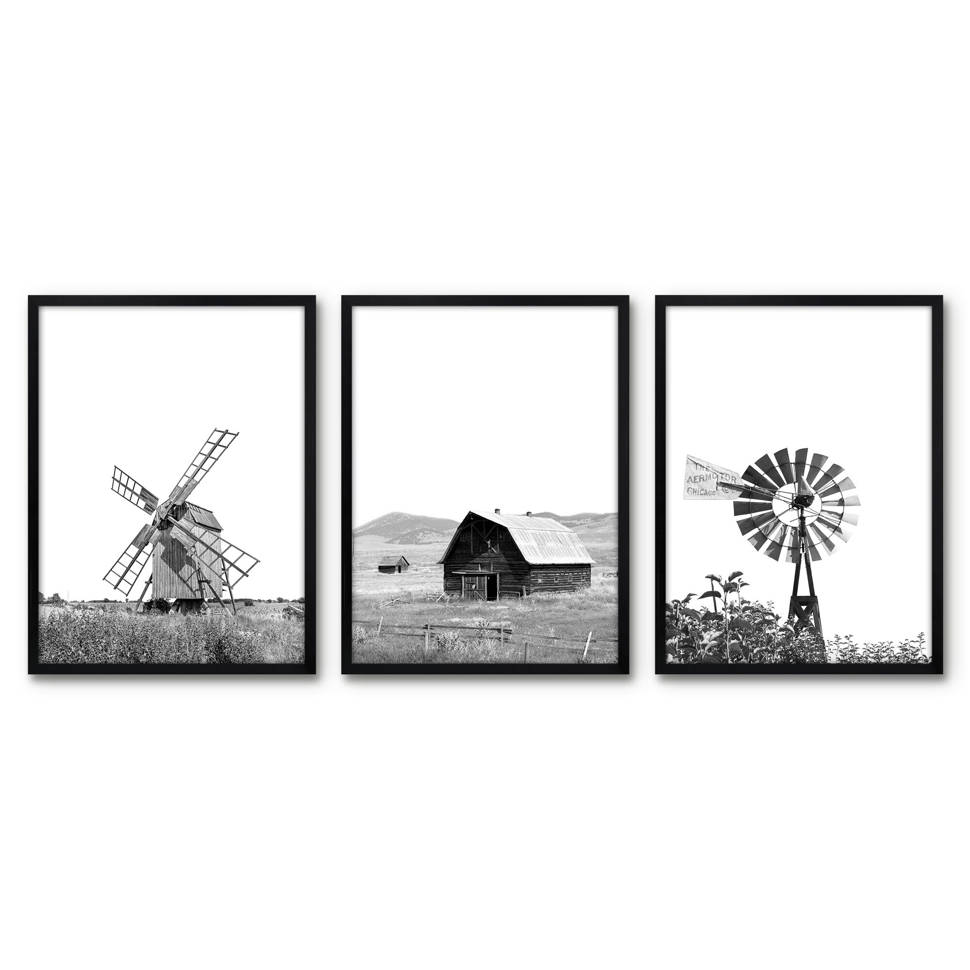 Americanflat 3 Piece 8x10 Unmatted Framed Print Set - Barn And Windmill by Artvir