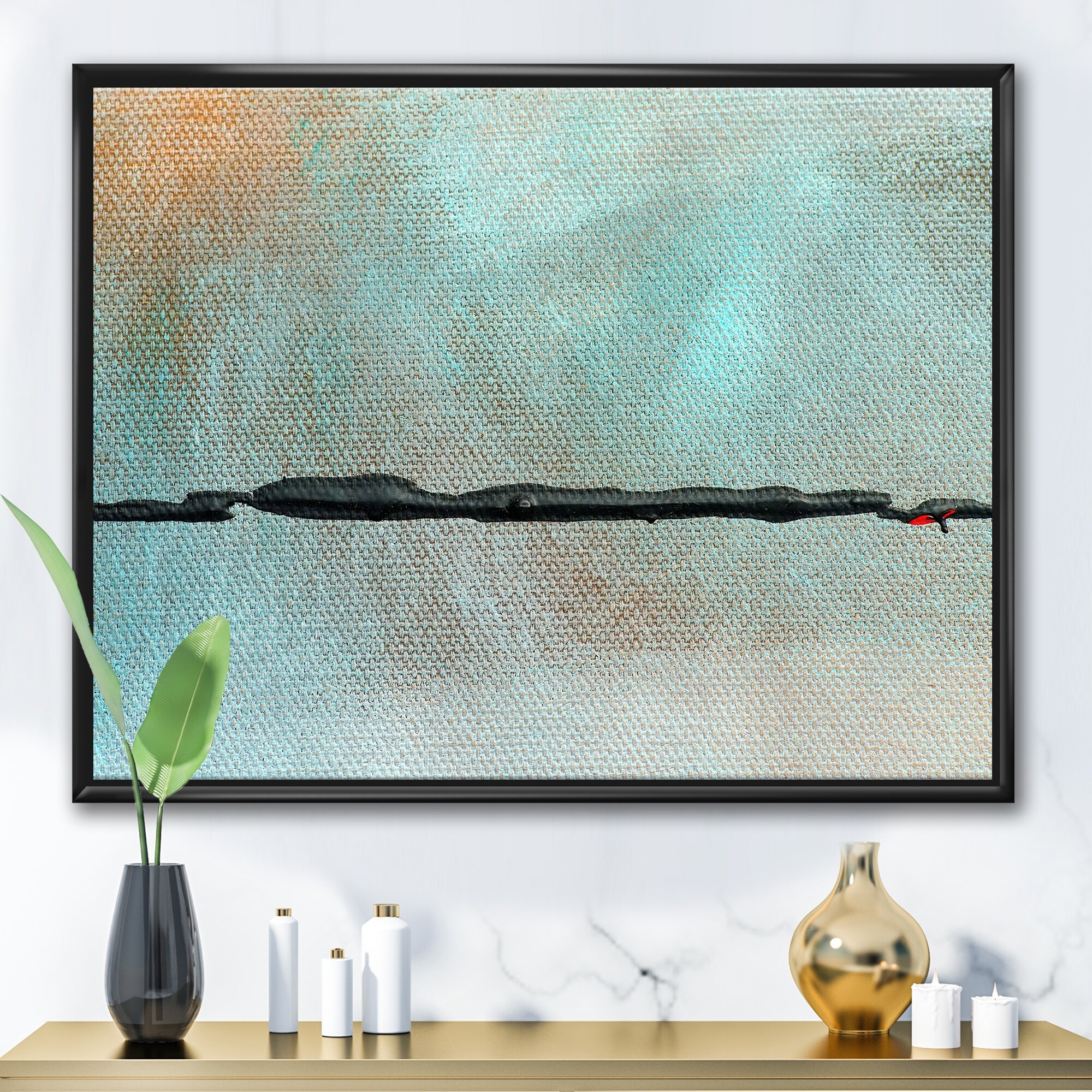 Designart "Black River in Oasis of Blue" Modern & Contemporary Framed Canvas Wall Art Print