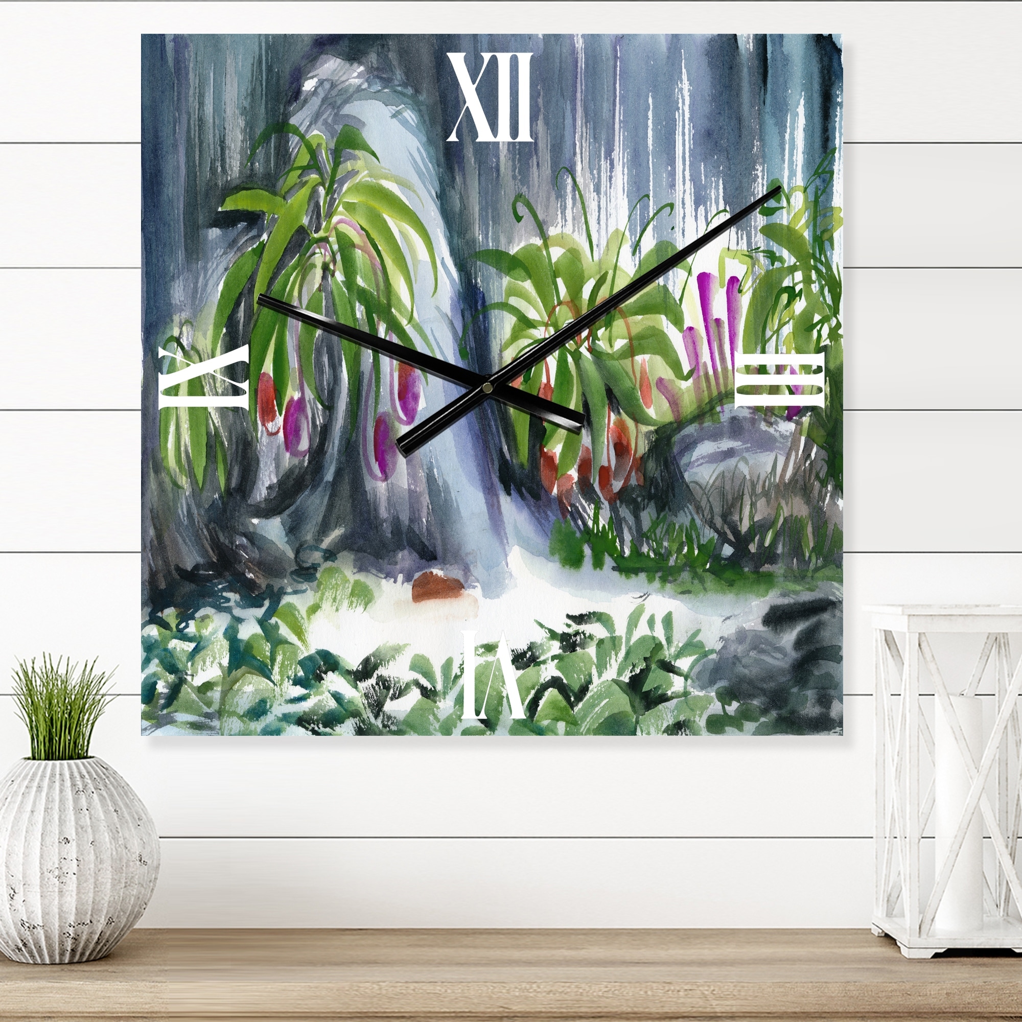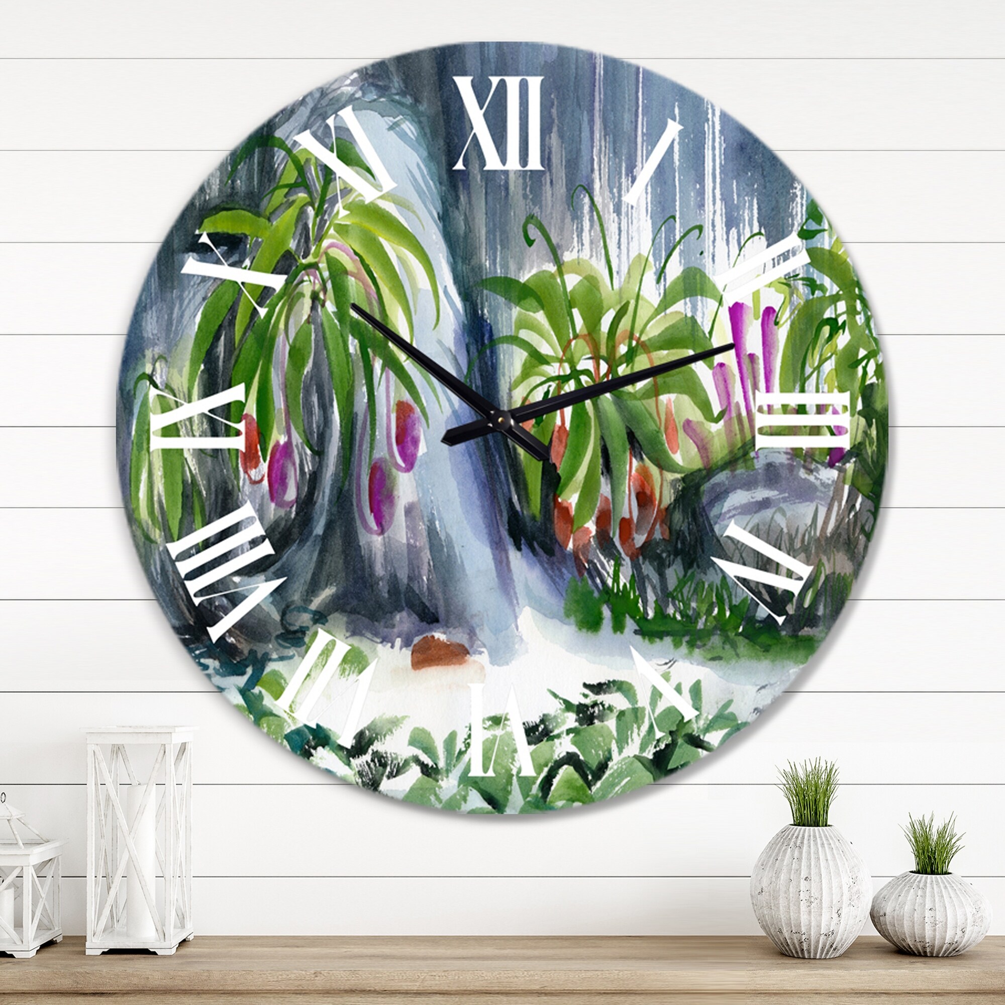 Designart 'Tropical Plants Oasis' Farmhouse Wall Clock Decor