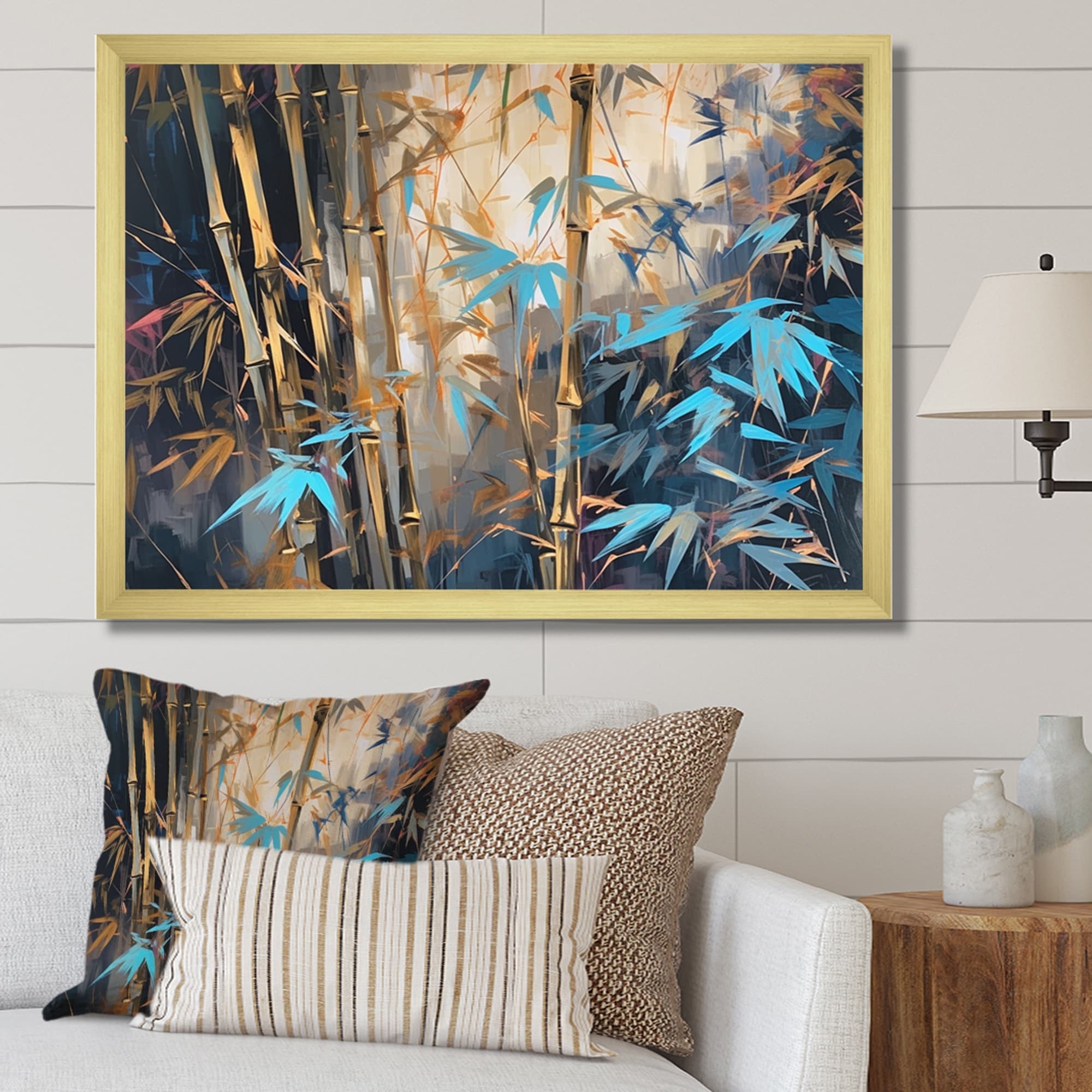 Designart "Green Floral Bamboo Oasis I" Floral Framed Canvas Art Print