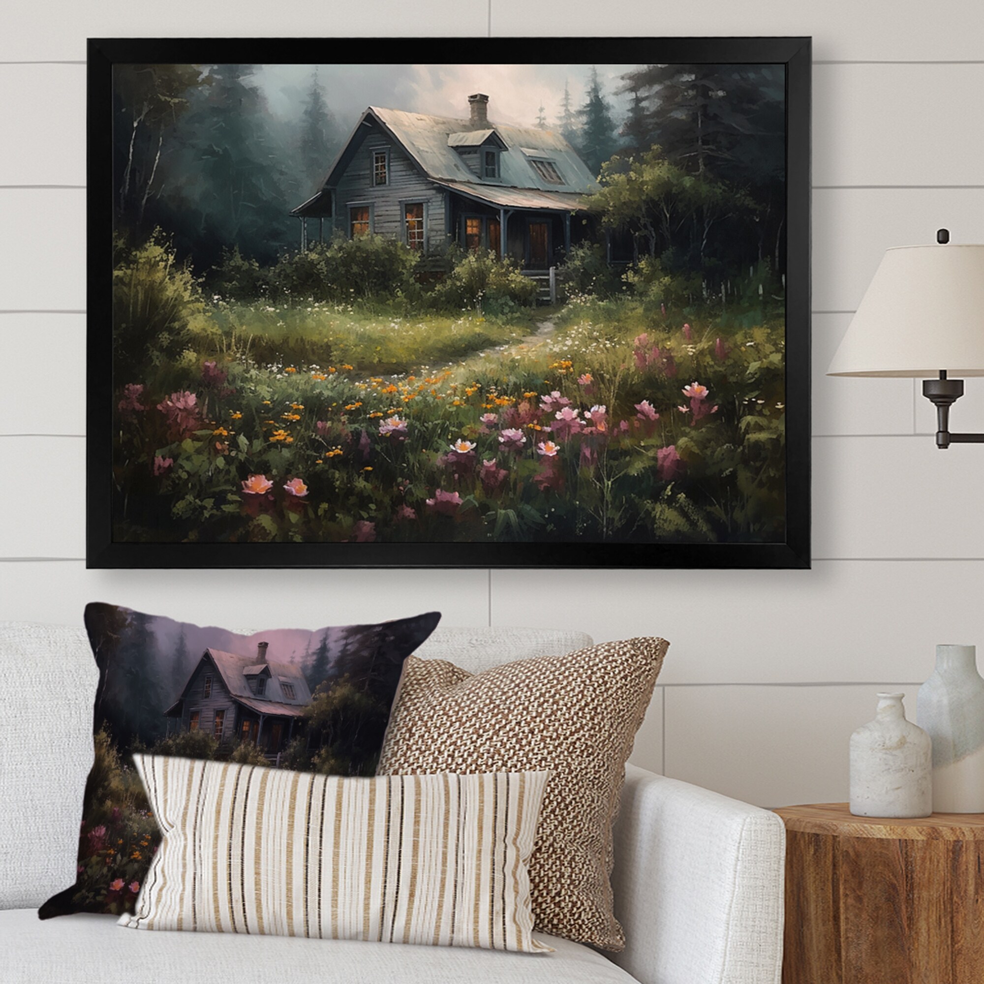 Designart "Quaint Cottage And Garden Oasis I" Cottage Landscape Framed Canvas Art Print