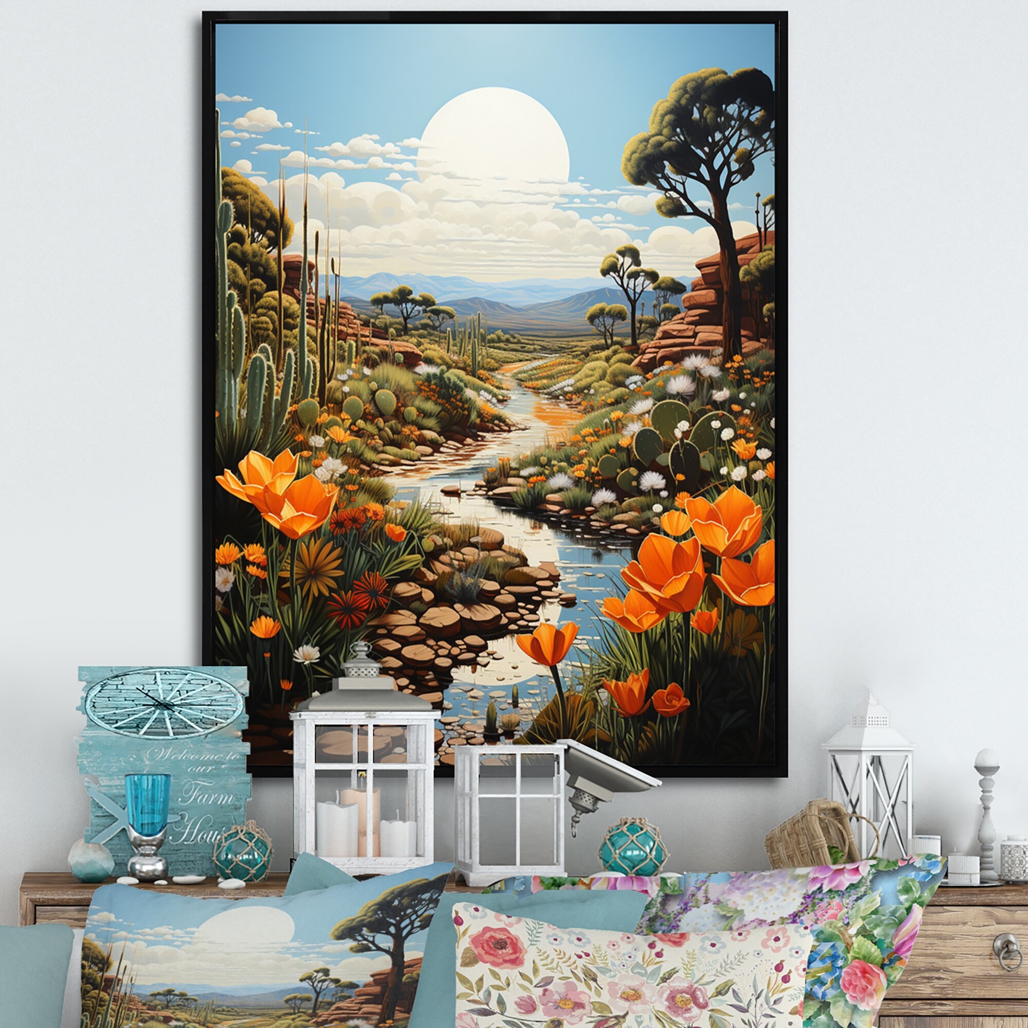 Designart "Green Orange Cactus Oasis" Cactus Framed Canvas Print
