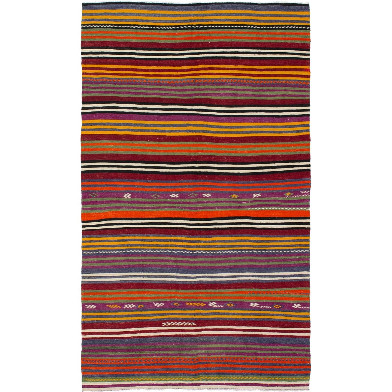 Kilim Reversible Multi-Color Area Rug Flat-weave Wool Carpet - 5'1" x 6'5"