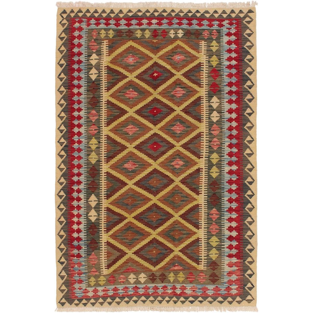 Brown Geometric Kilim Oriental Area Rug Hand-woven Wool Carpet - 5'1"x 6'5"