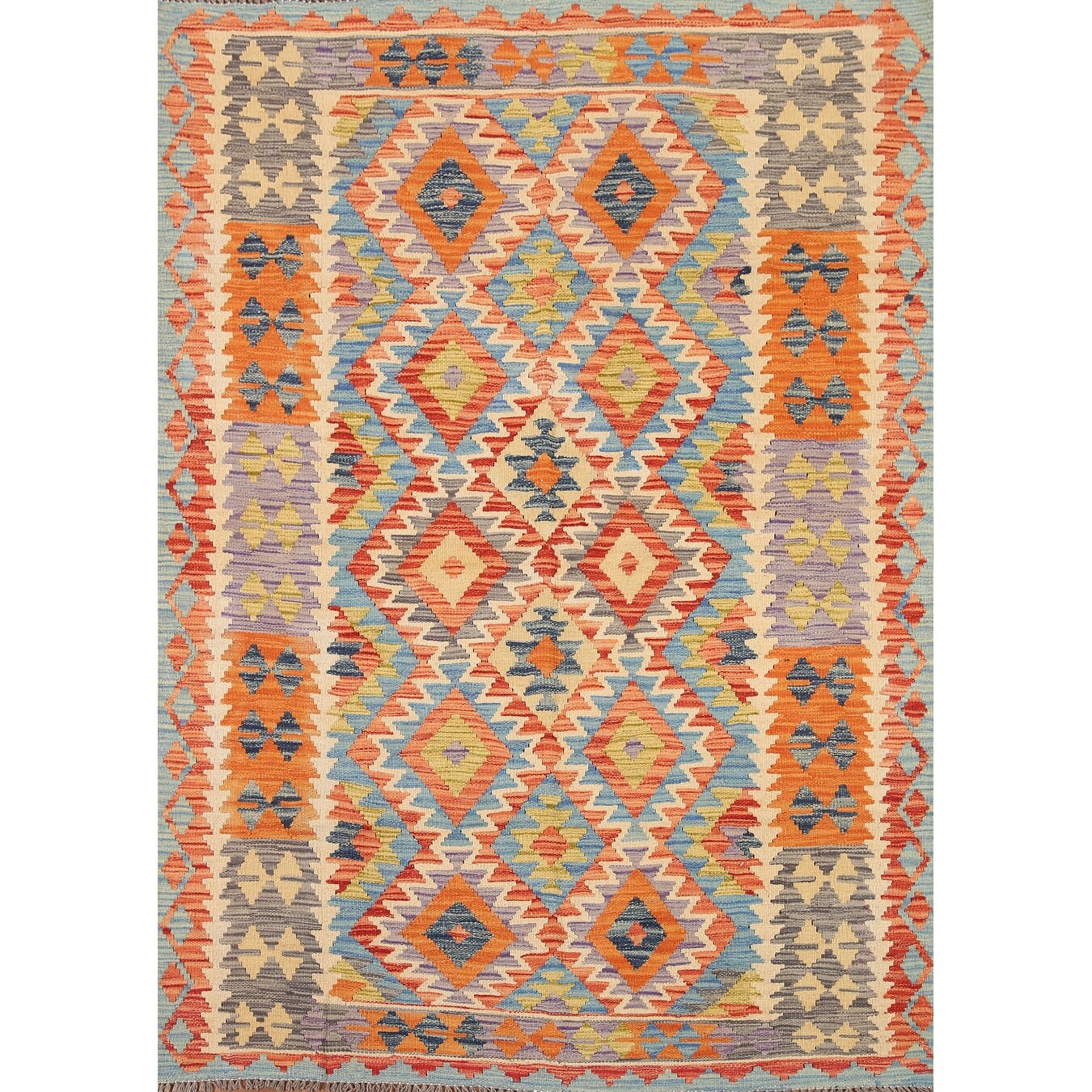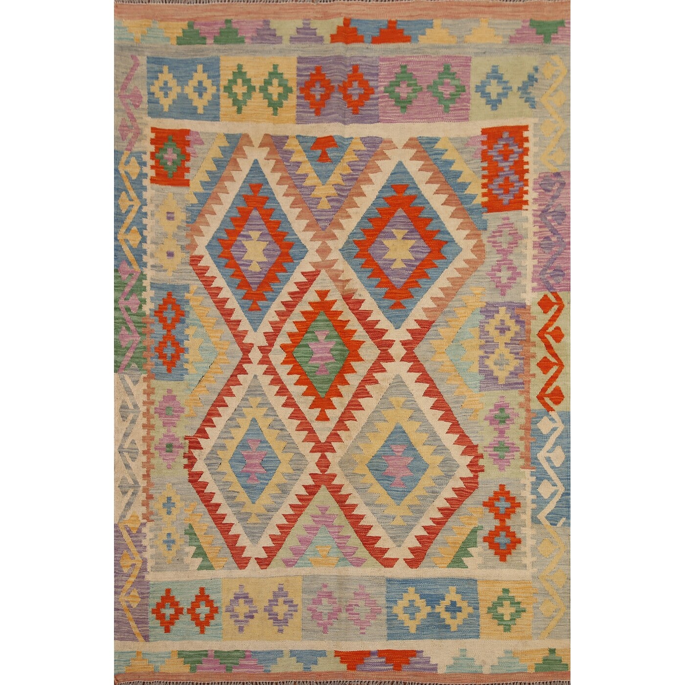 Multi-Color Geometric Kilim Rug Hand-woven Wool Carpet - 5'1"x 6'0"