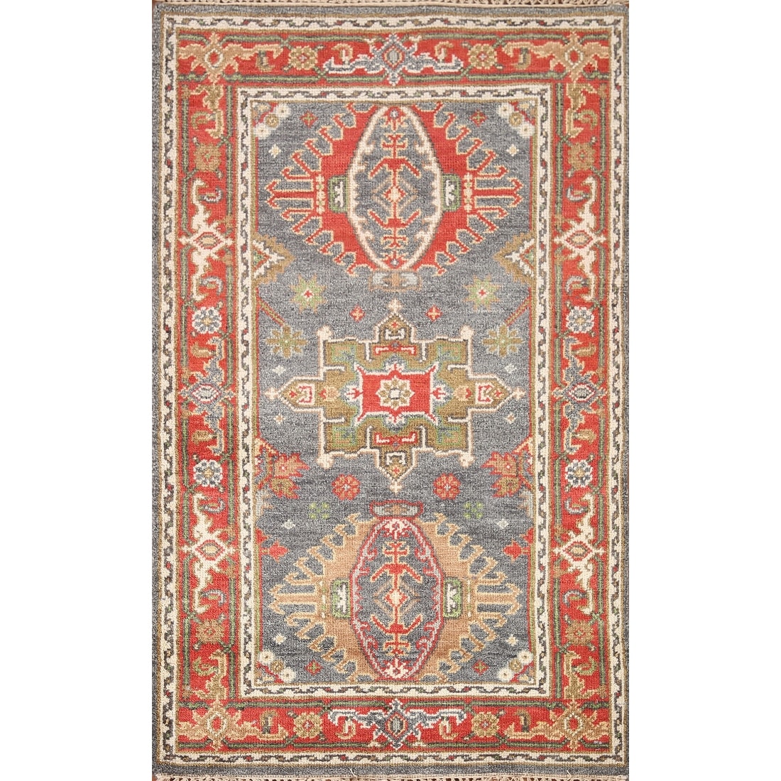 Geometric Kazak Oriental Area Rug Handmade Wool Carpet - 3'0"x 5'1"