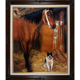 La Pastiche At the Stables, Horse and Dog, 1861 with Vintage Cherry Frame, 26" x 30"