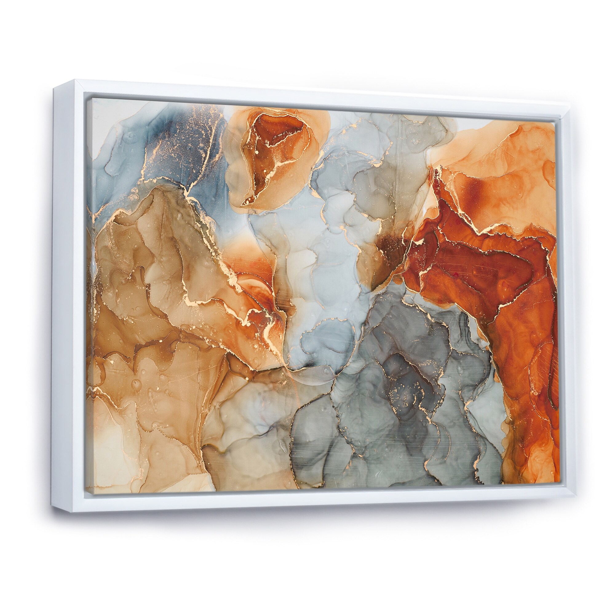 Designart "Brown Luxury Abstract Fluid Art IV" Modern Framed Canvas Wall Art Print