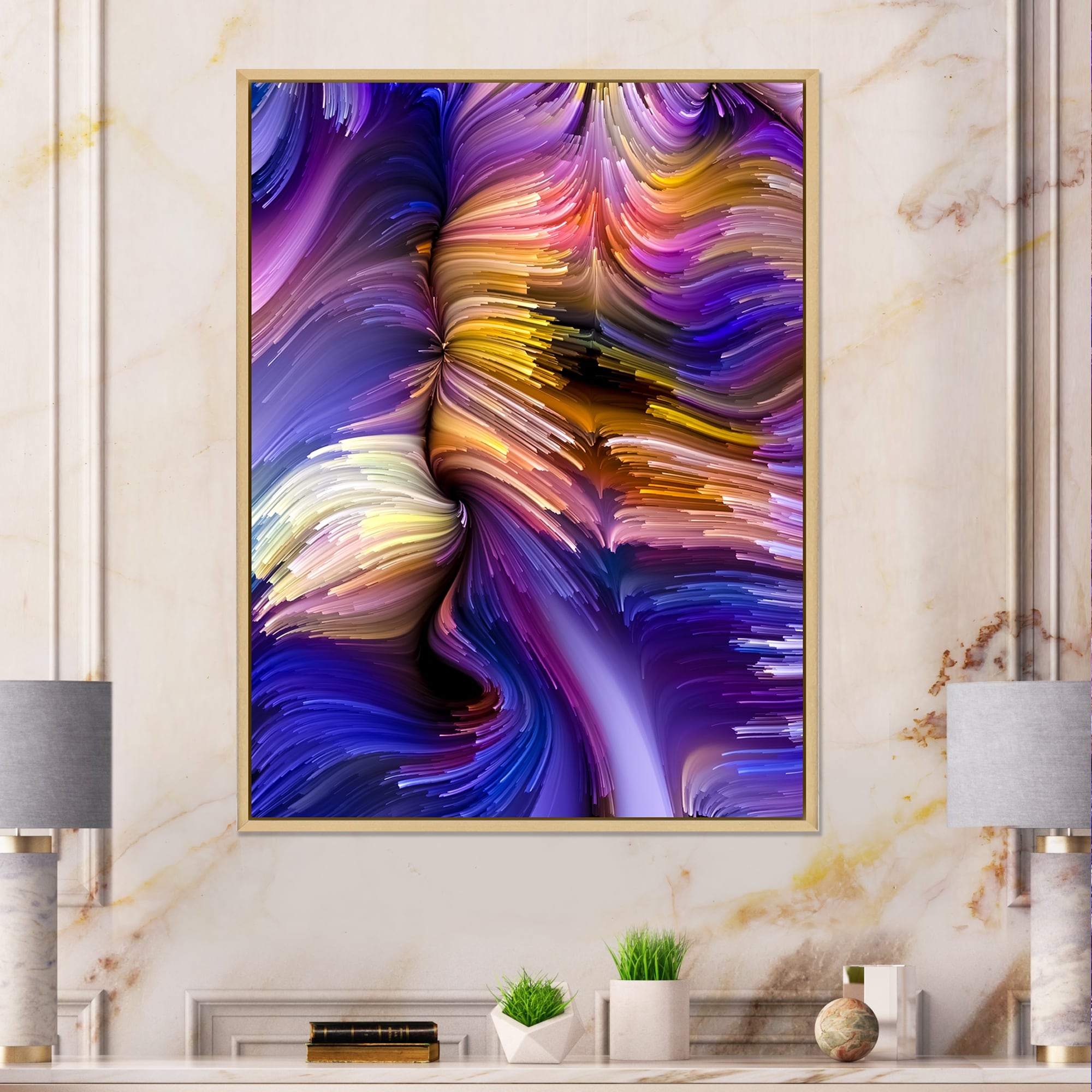 Designart "Soft Colors Marble Abstract V" Abstract Marble Framed Wall Art for Living Room