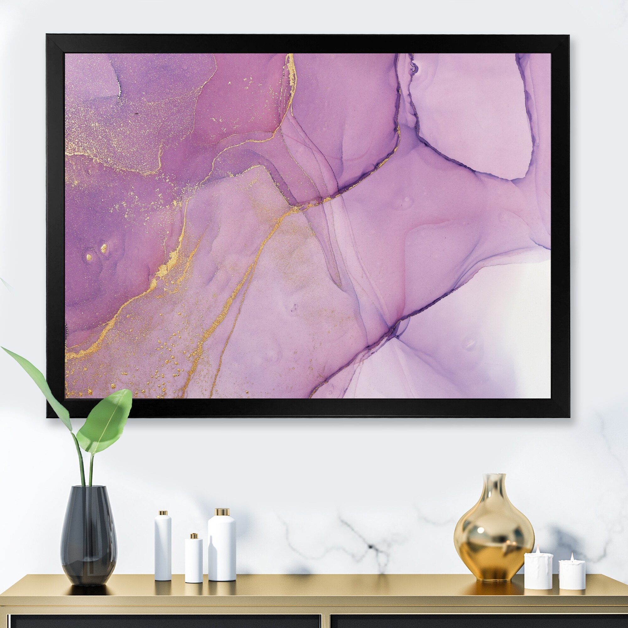 Designart "Pink & Marble Fluid Art" Abstract Framed Art Print