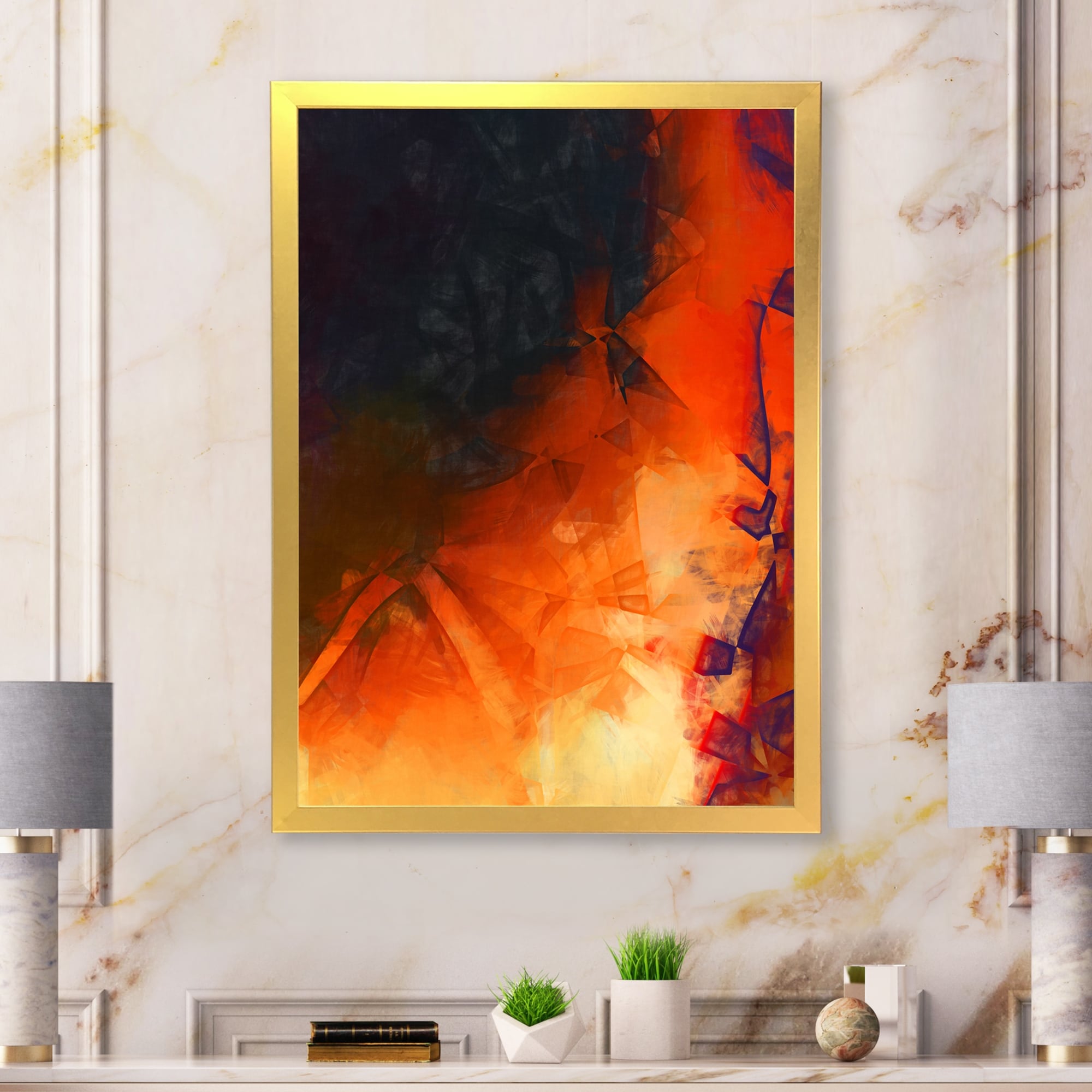 Designart "Flourishing Golden Consciousness I" Modern Abstract Framed Canvas Wall Art Print