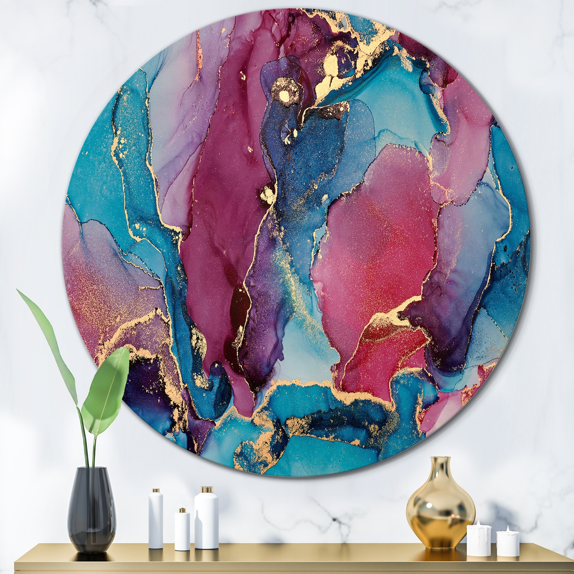 Designart 'Blue Luxury Abstract Fluid Art IV' Modern Metal Circle Wall Art
