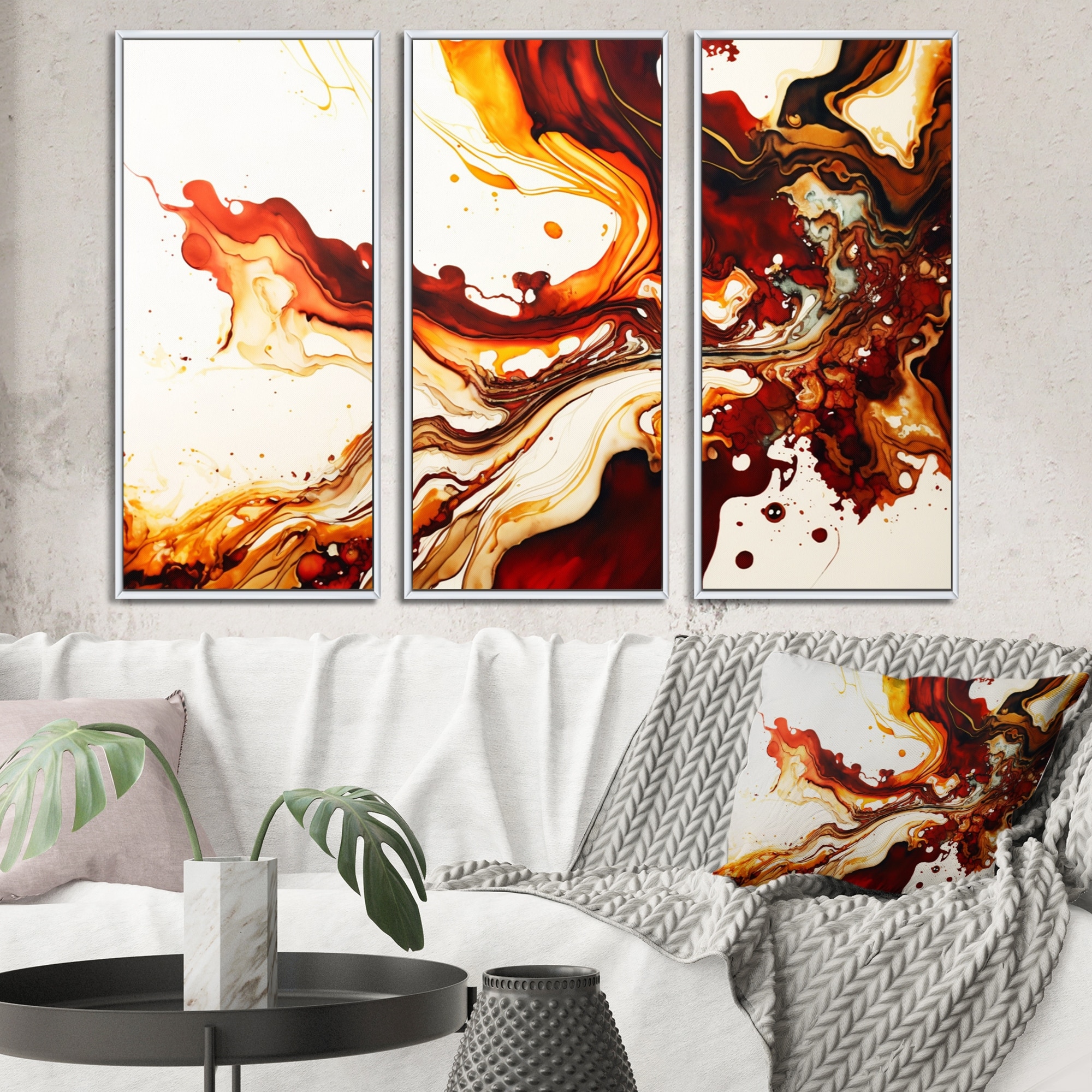 Designart "Rendend Point Dreams IV" Abstract Liquid Ink Framed Canvas Wall Art Print - 3 Panels