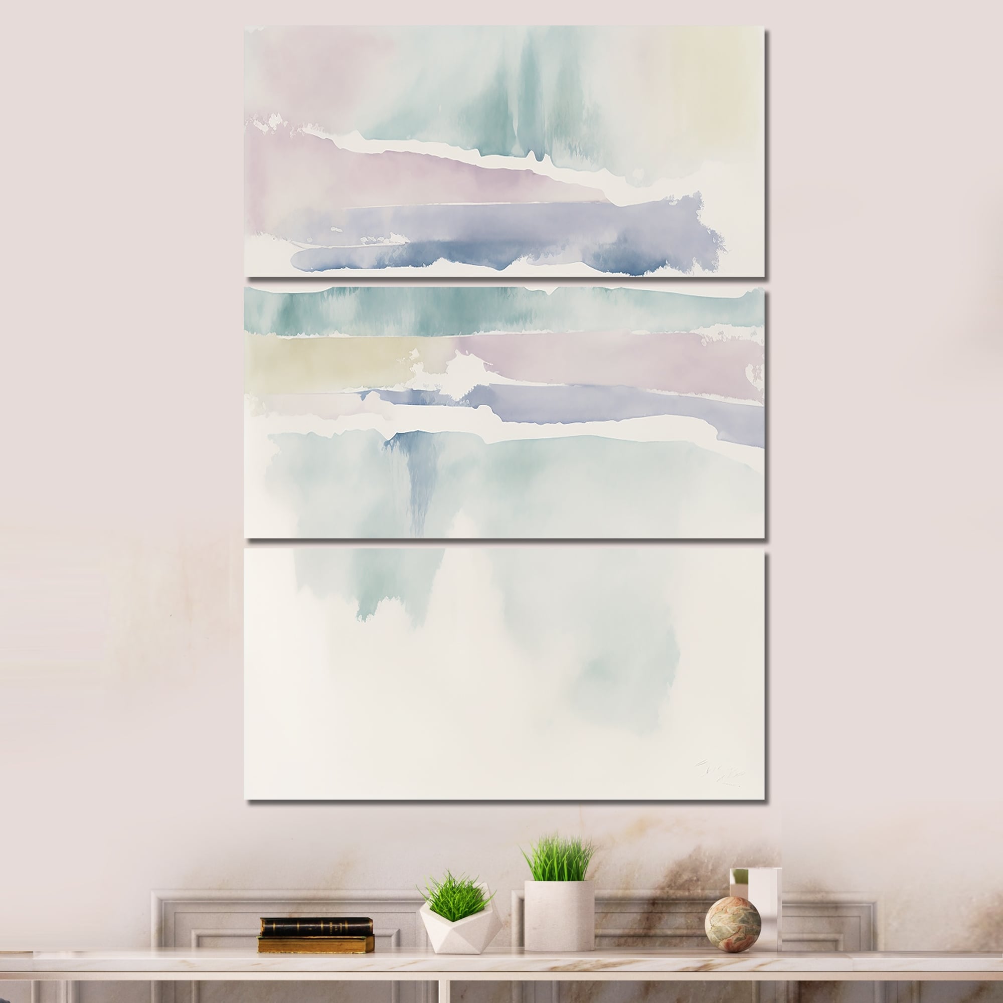 Designart "Quietude In Muted Pastel I " Abstract Liquid Ink Canvas Art Print - 3 Panels