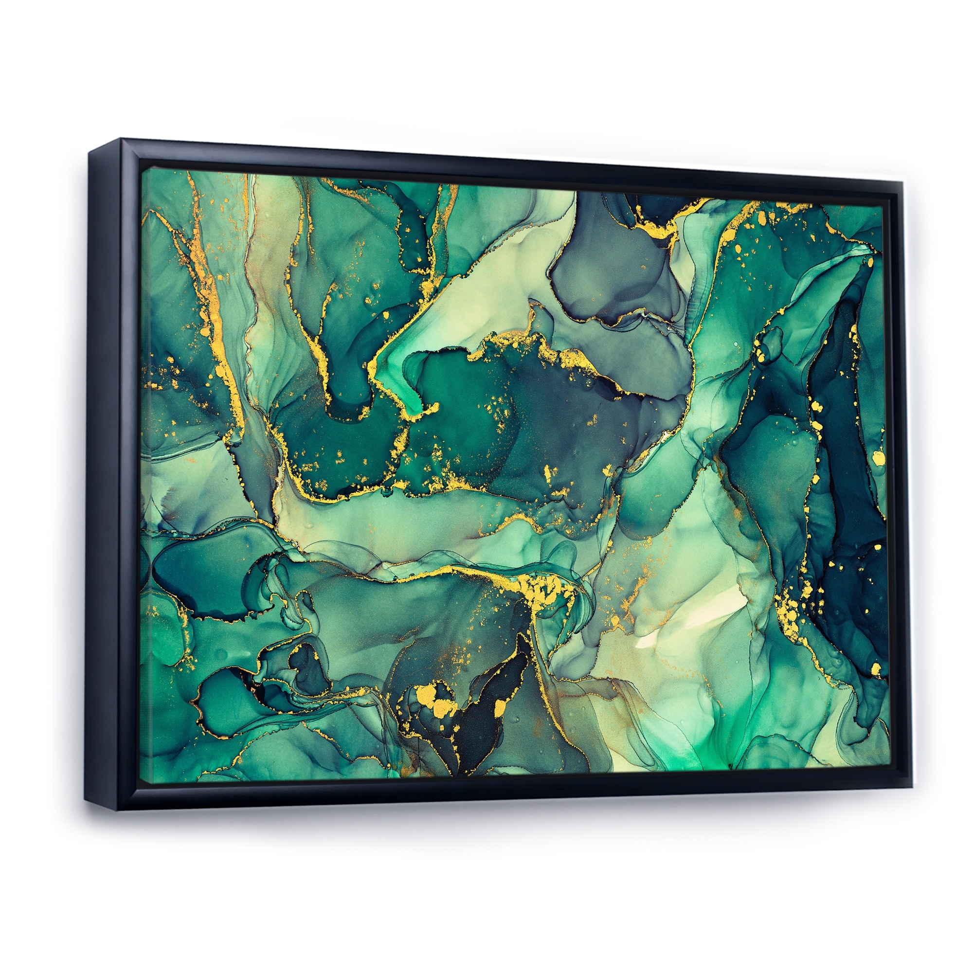 Designart "Green Luxury Abstract Fluid Art IV" Modern Framed Canvas Wall Art Print