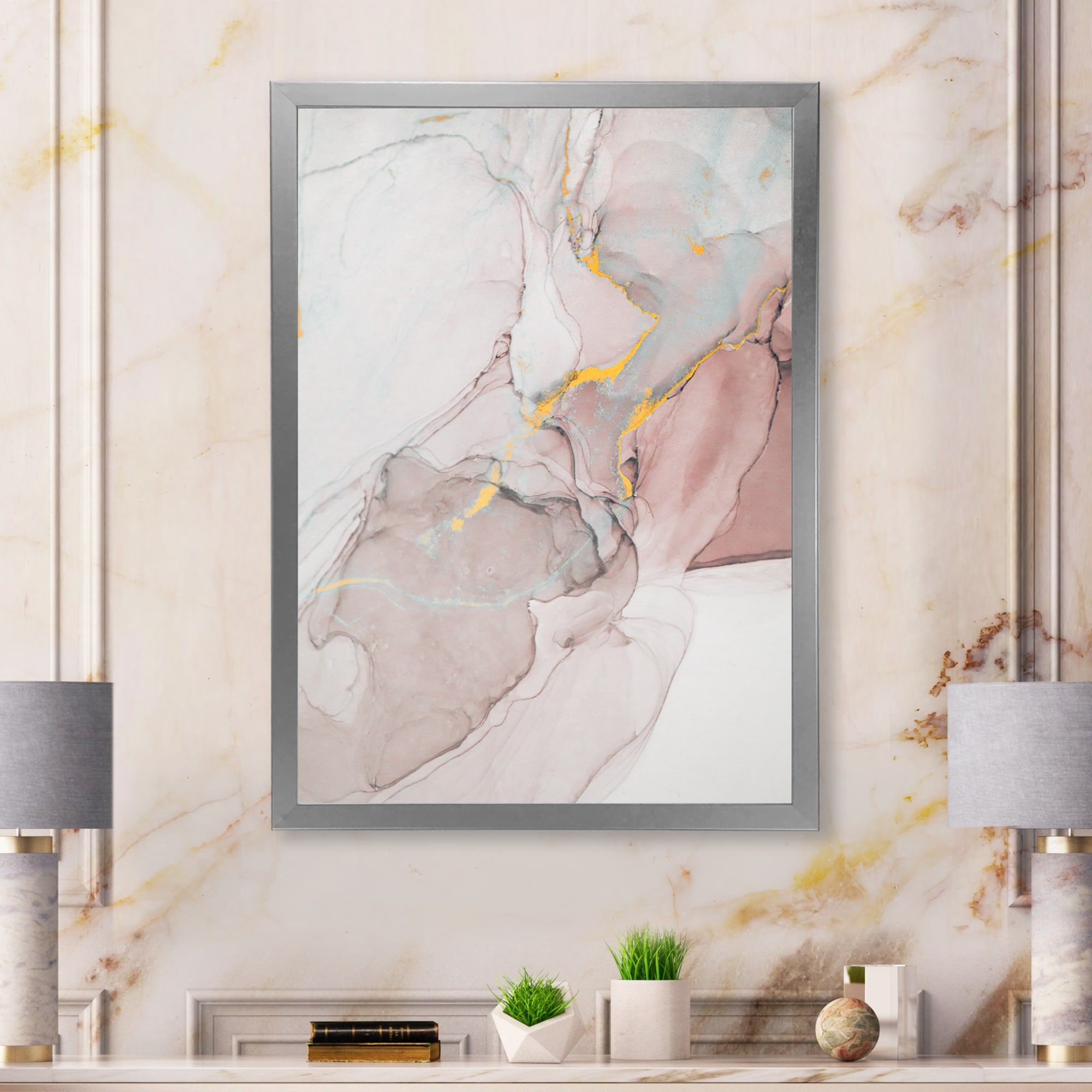 Designart "Grey Meets Pink Marble Art Ripples" Abstract Framed Wall Decor