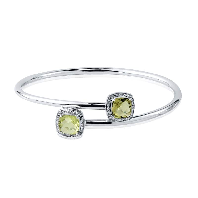 Auriya 3 1/2ct Cushion-Cut Lemon-Green Quartz Gold over Silver Bangle Bracelet with Diamond Accents