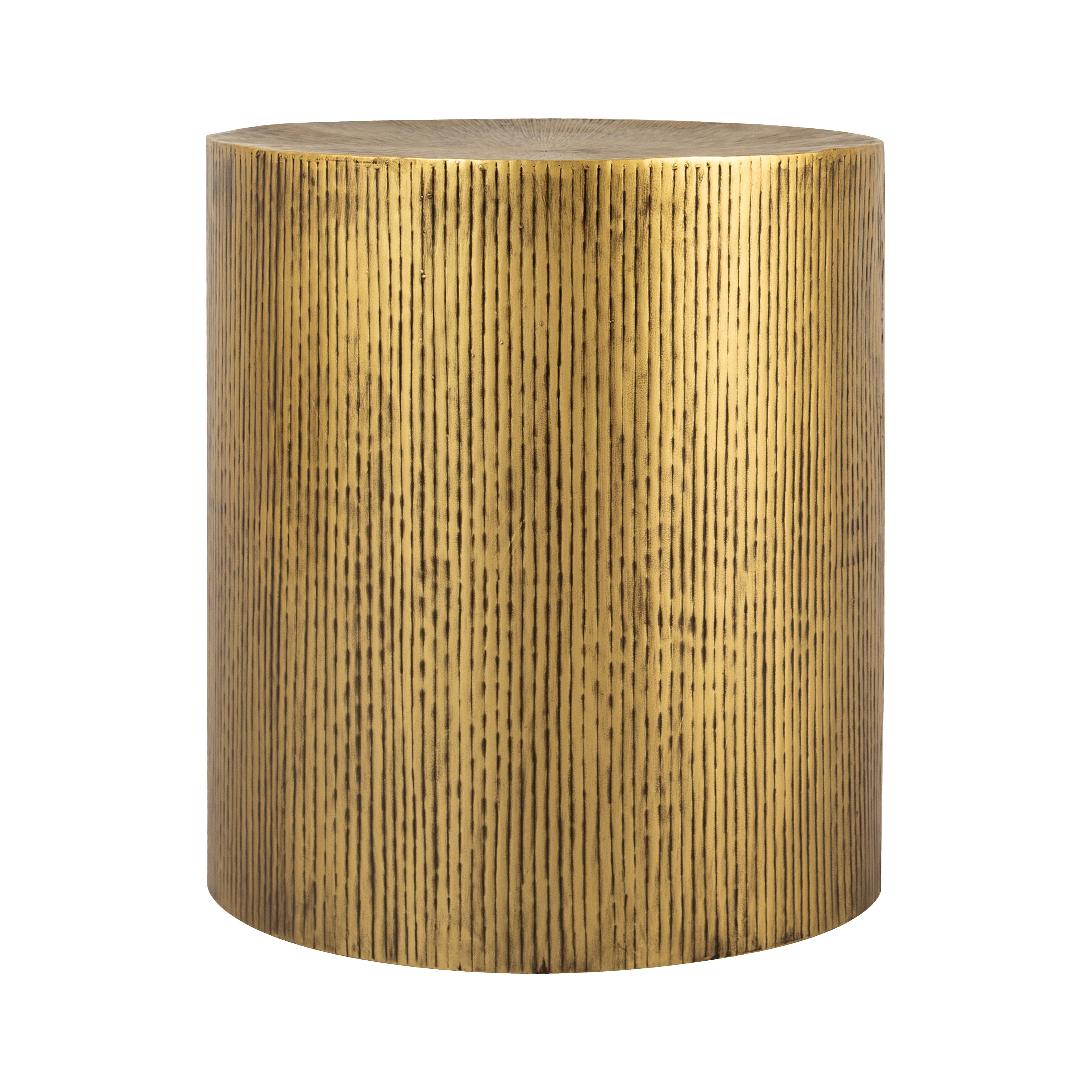 18" Antique Gold Modern Style Drum Shaped Accent Table