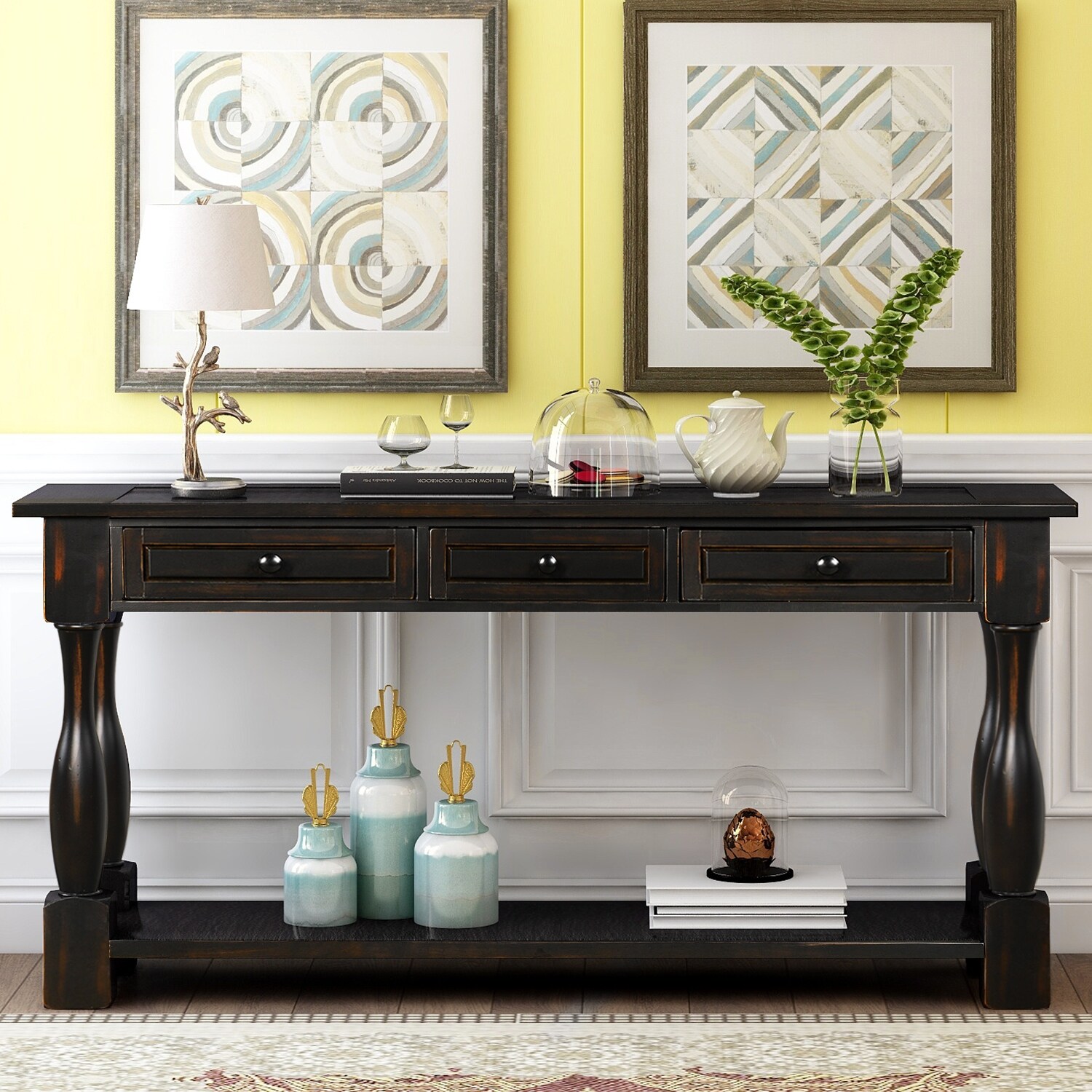 Console Table with Drawers and Shelf
