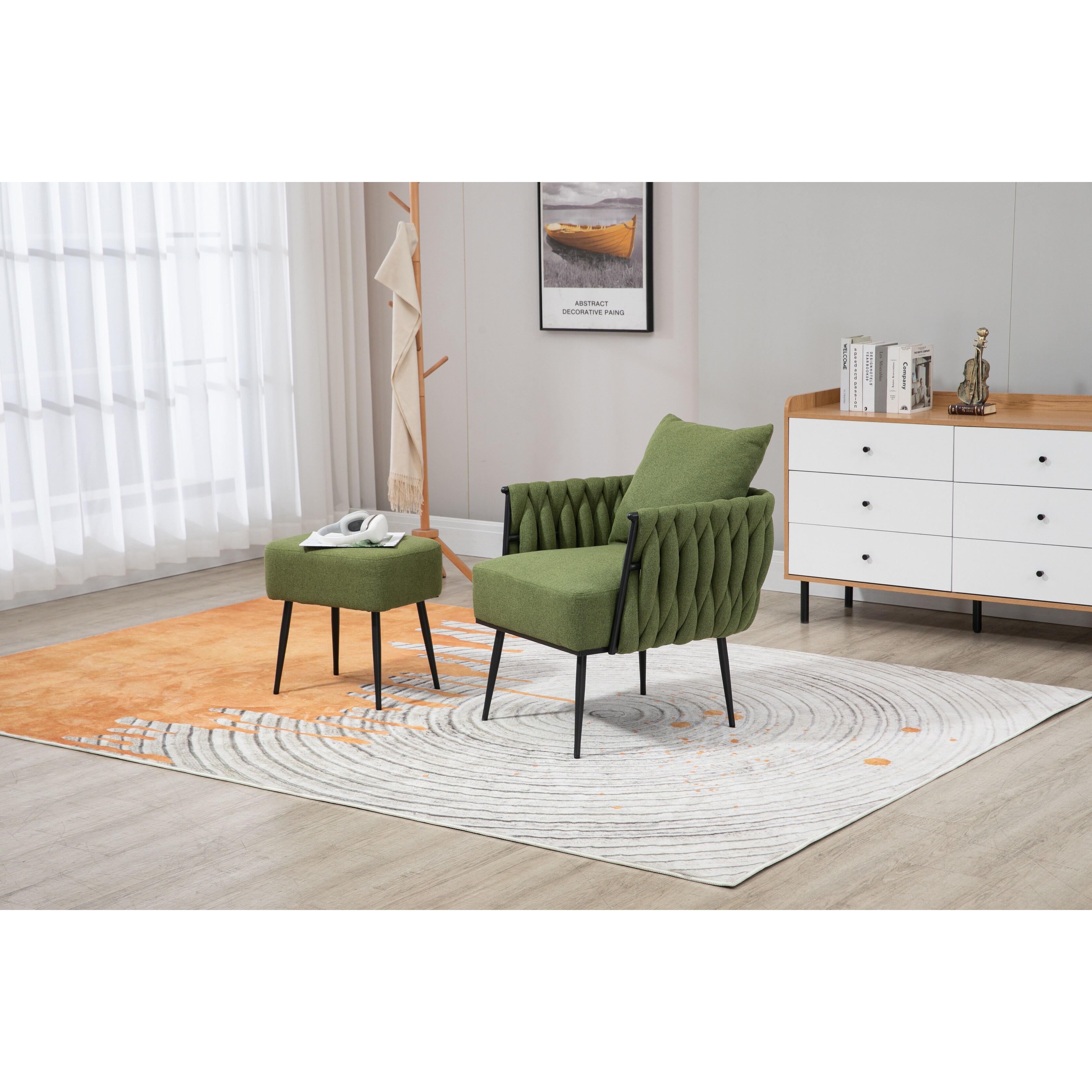 Velvet Accent Chair Modern Upholstered Living Room Accent Chair Tufted Lounge Armchair with Chair & Ottoman Sets, Green