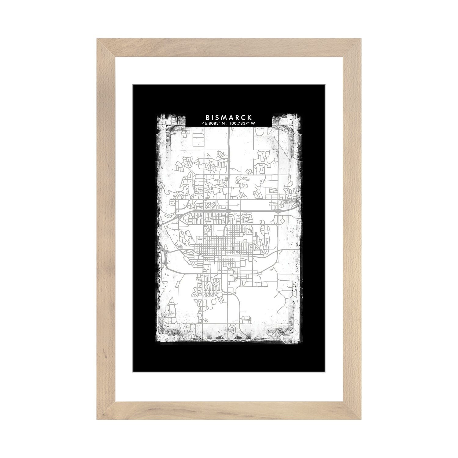 iCanvas "Bismarck, North Dakota City Map Black White Grey Style" by WallDecorAddict