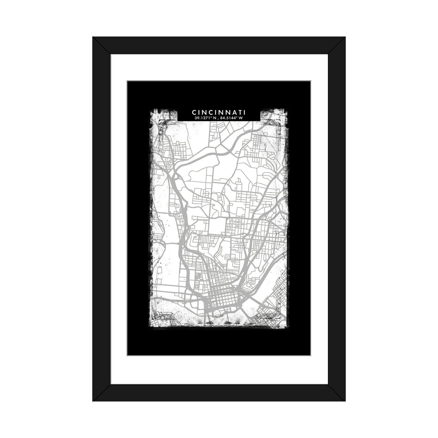 iCanvas "Cincinnati City Map Black White Grey Style" by WallDecorAddict