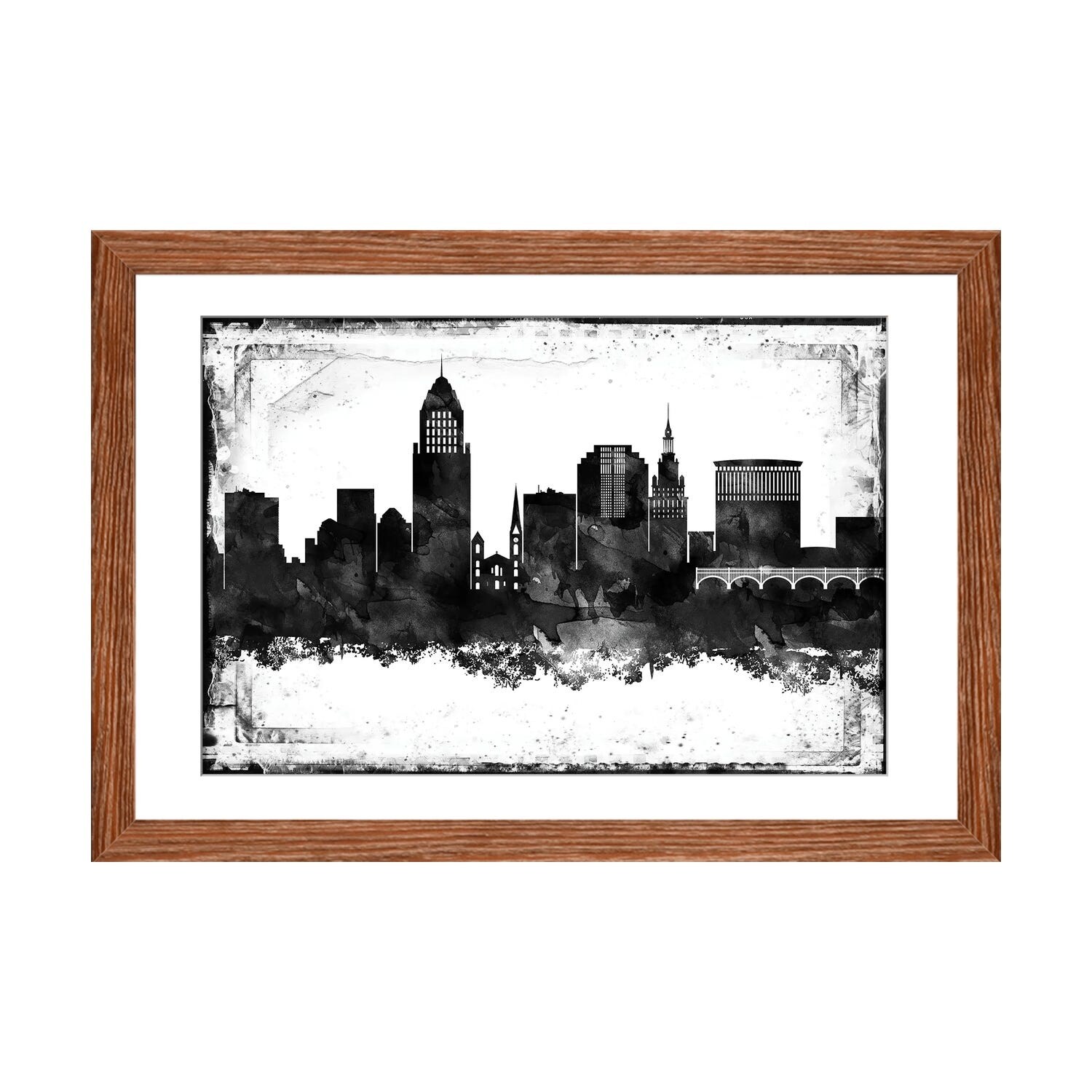 iCanvas "Sacramento Skyline Black & White, Drops" by WallDecorAddict Framed Canvas Print
