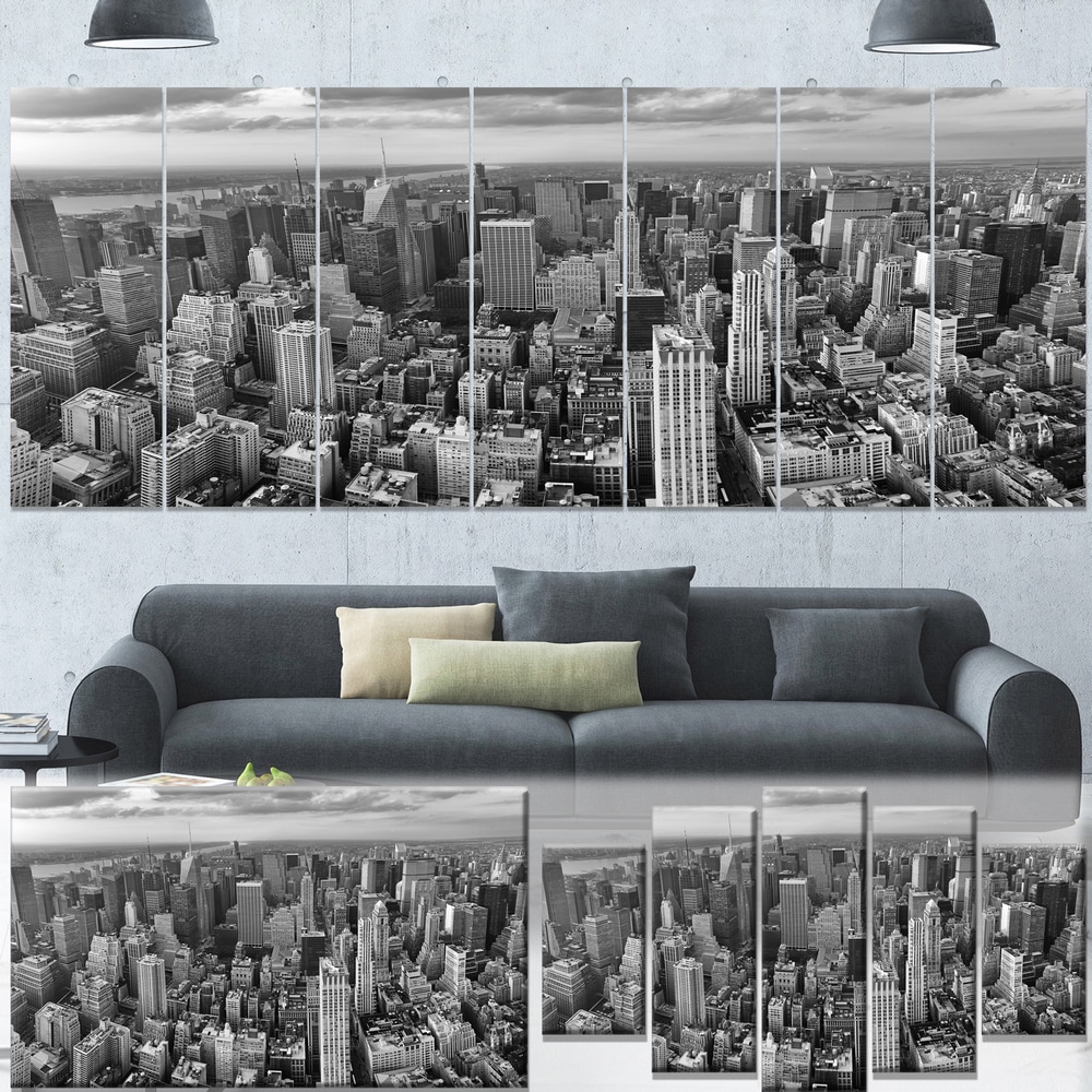 Designart "Panoramic Aerial View of Manhattan" Modern Cityscape Canvas Artwork Print