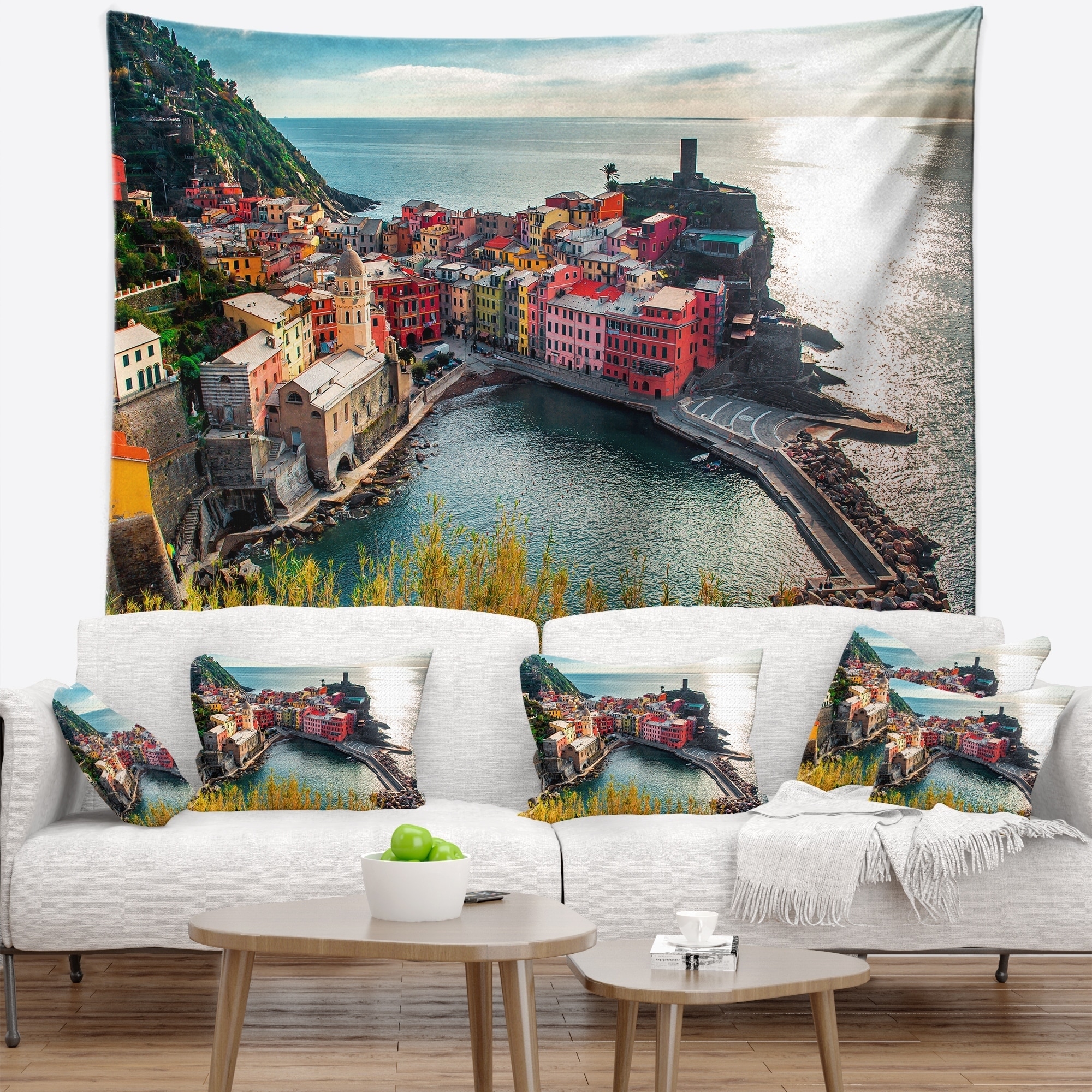 Designart 'Vernazza Bay Aerial View' Seascape Wall Tapestry