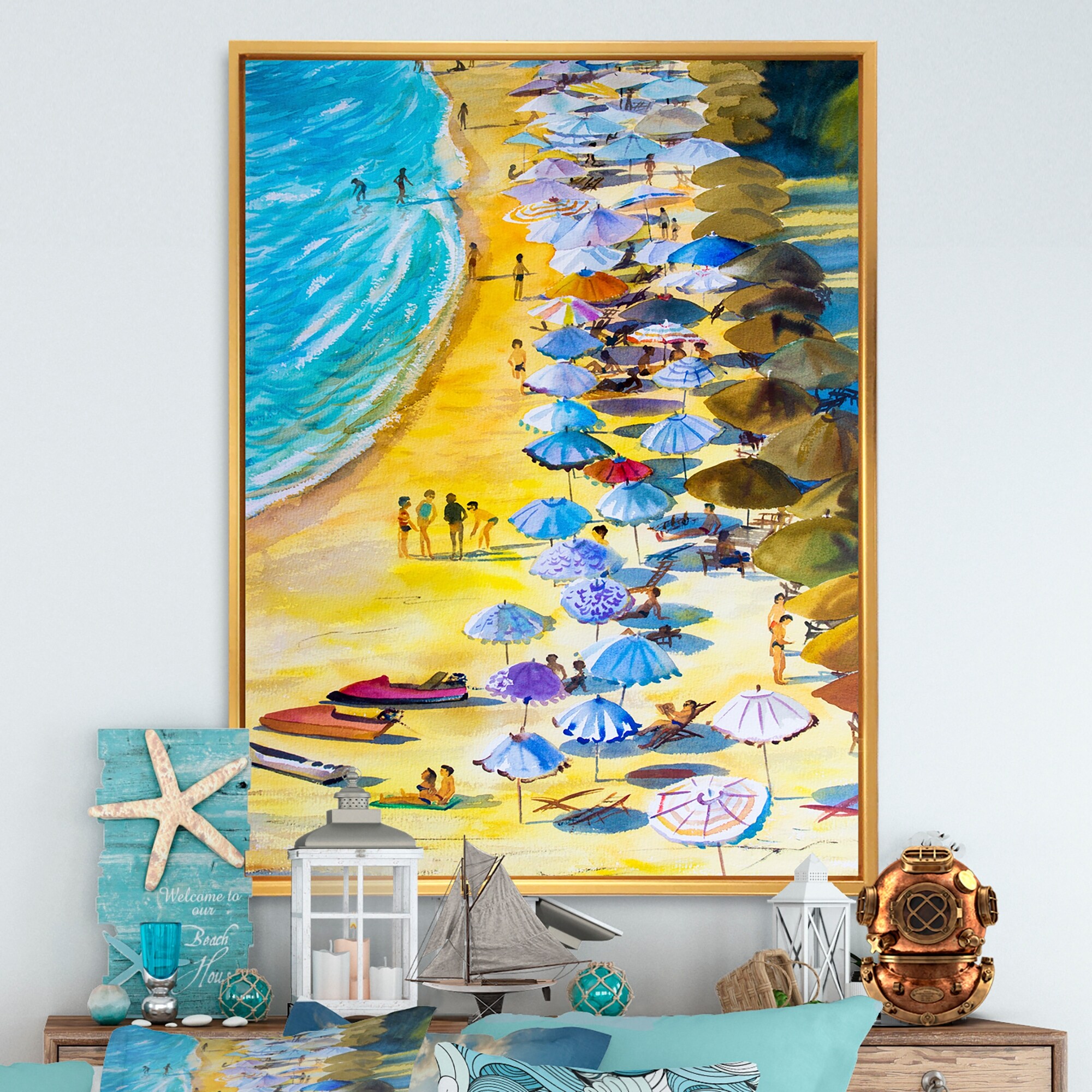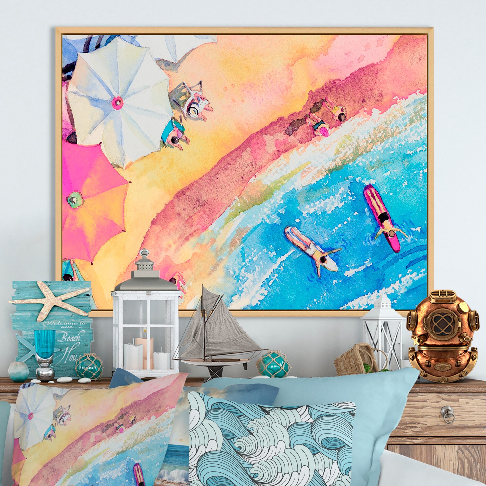 Designart "Aerial Pastel Beach California" Nautical & Coastal Framed Canvas Wall Art