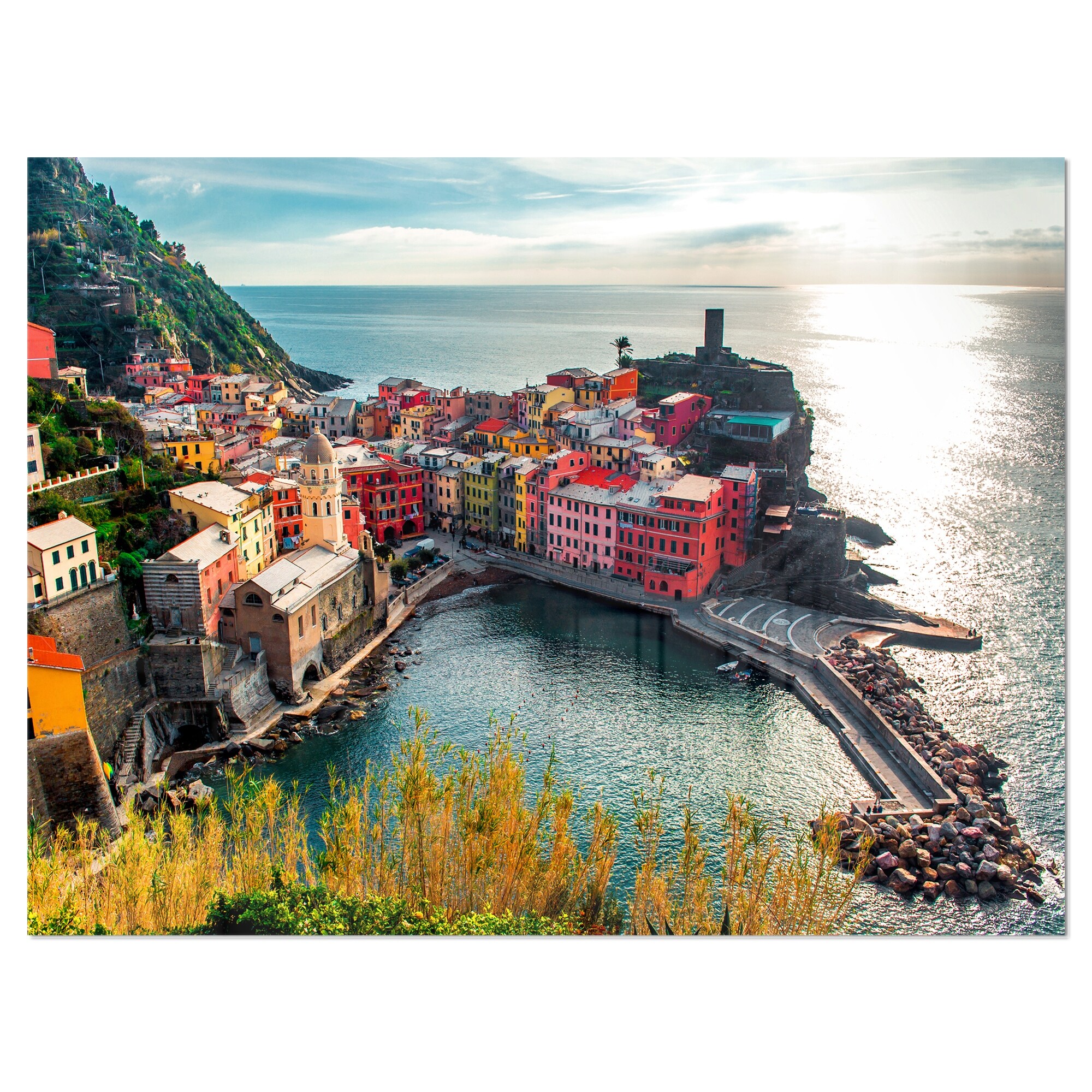 Vernazza Bay Aerial View - Large Seascape Glossy Metal Wall Art