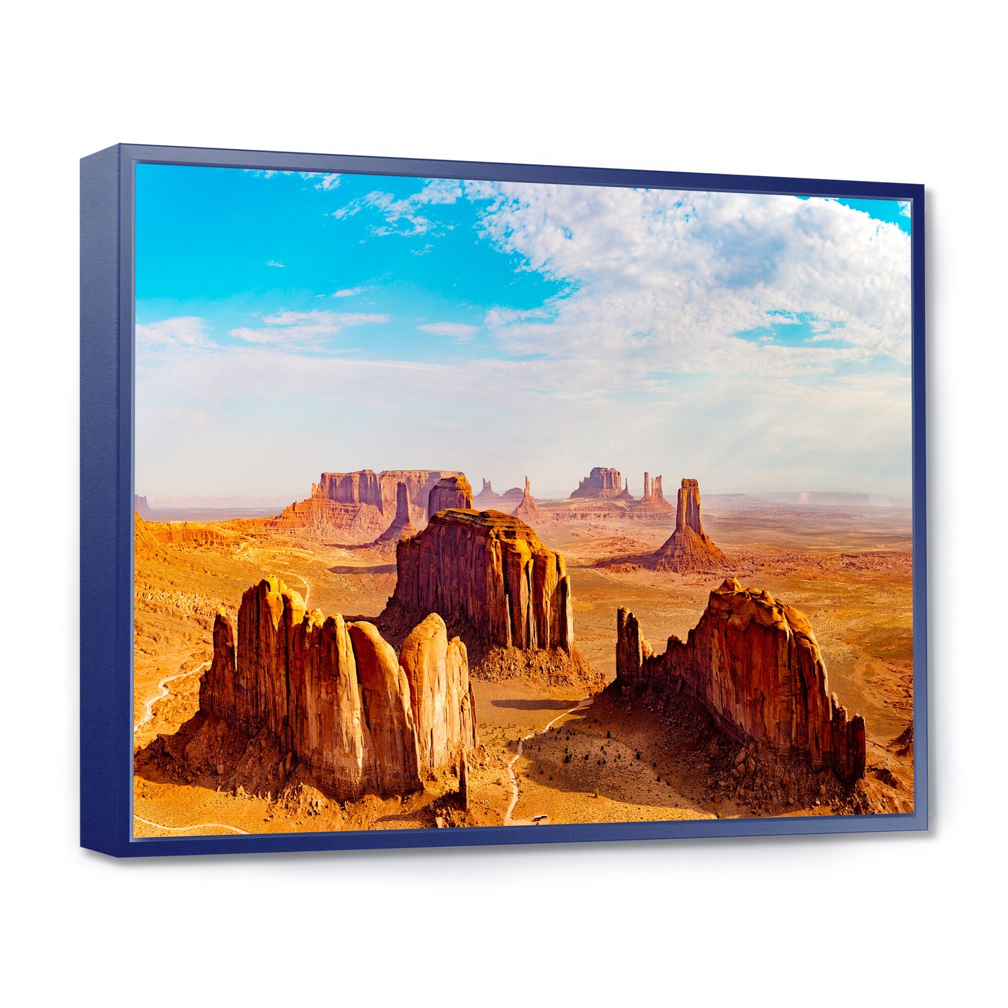 Designart "Monument Valley Aerial Sky View" Landscape Print Wall Framed Canvas Artwork Print