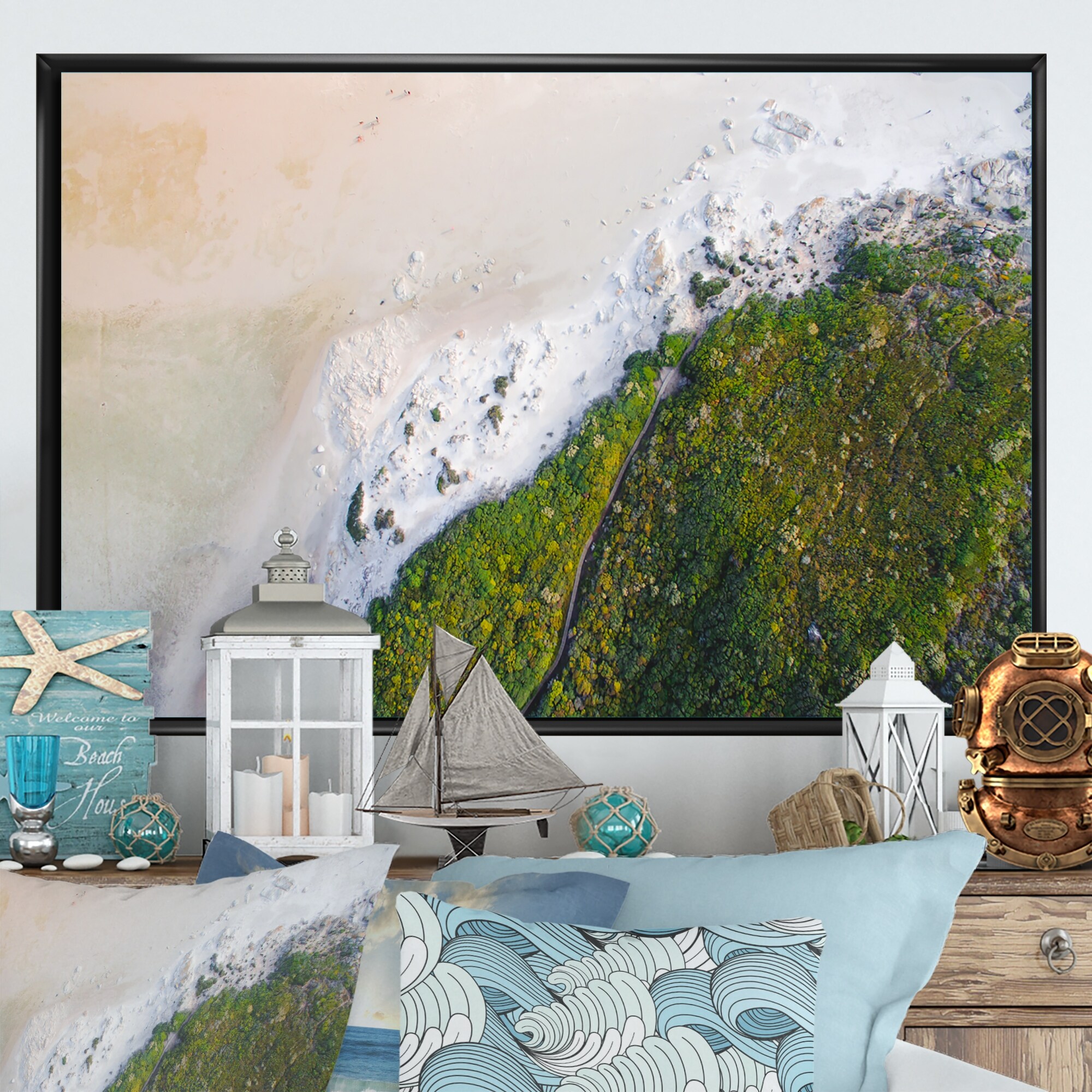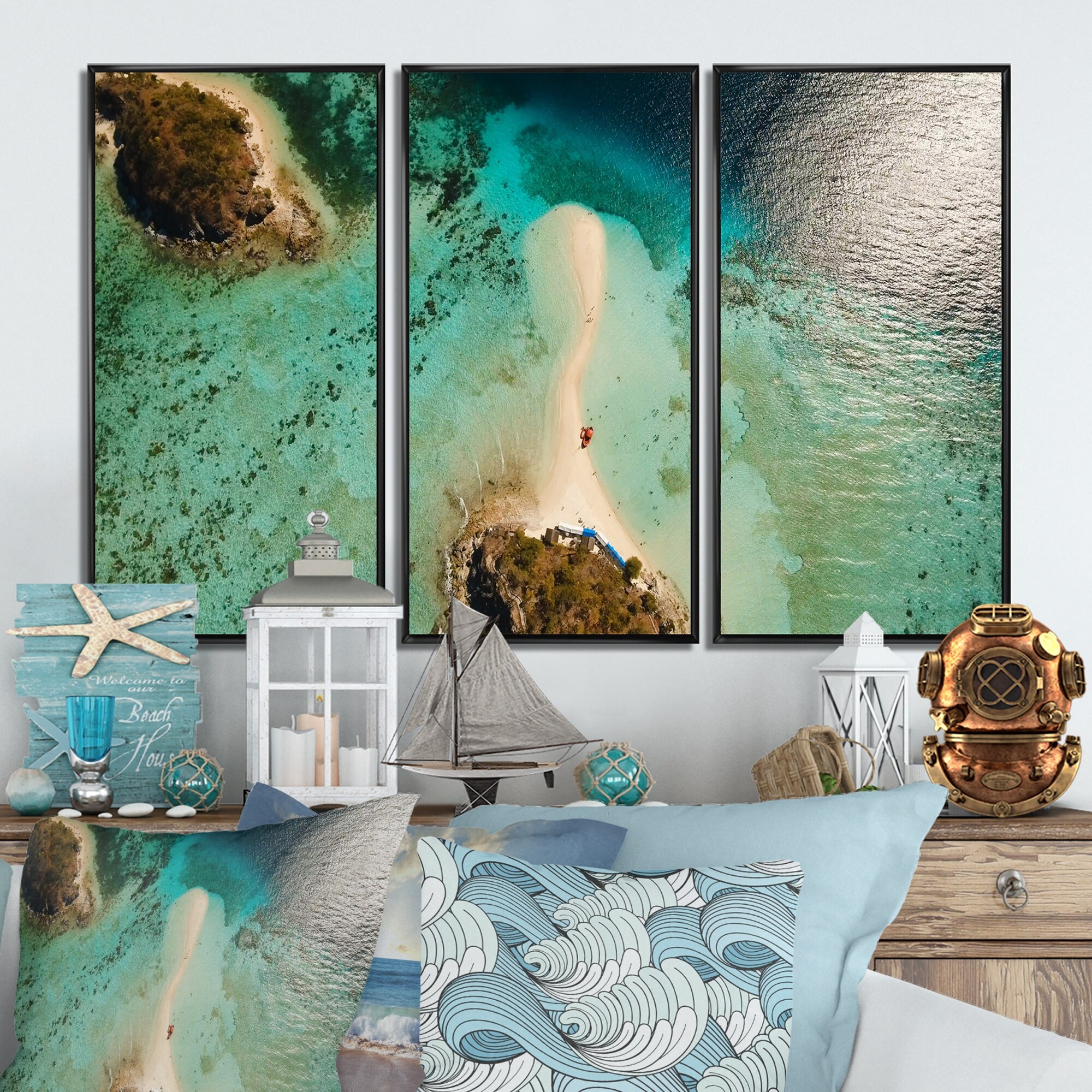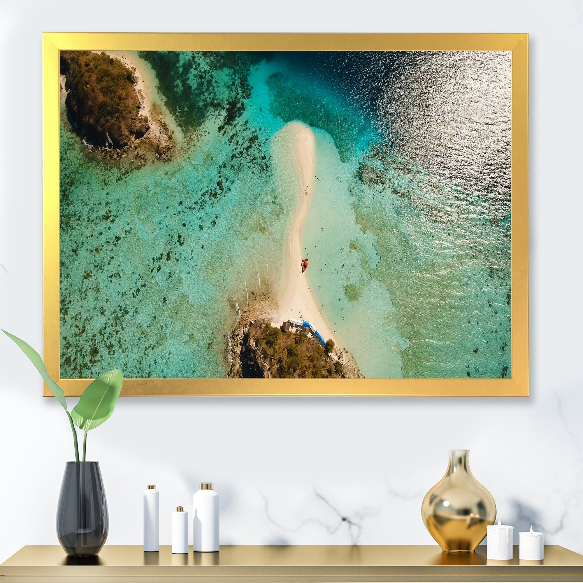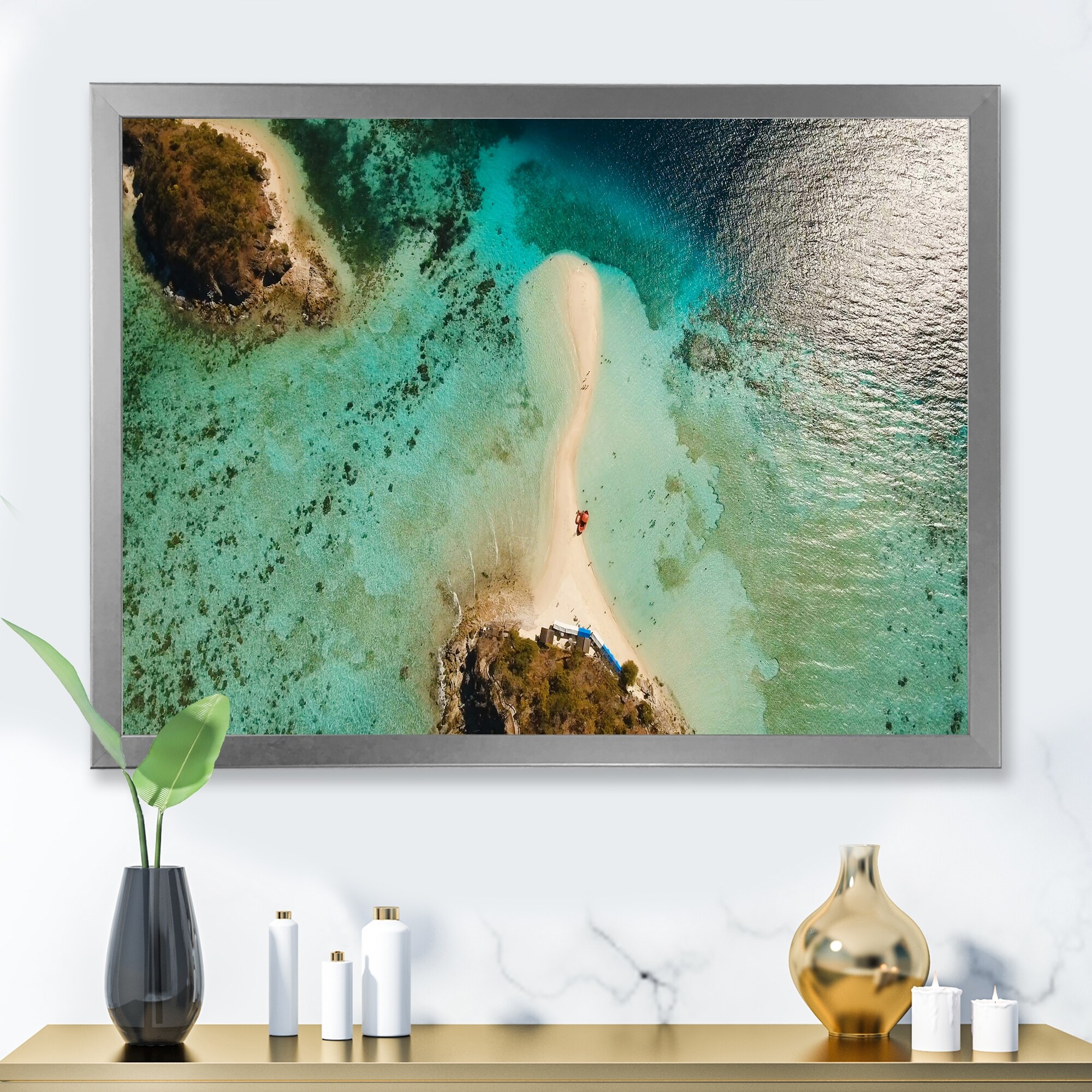 Designart "Aerial View of Tropical Beach II" Nautical & Coastal Framed Canvas Wall Art Print