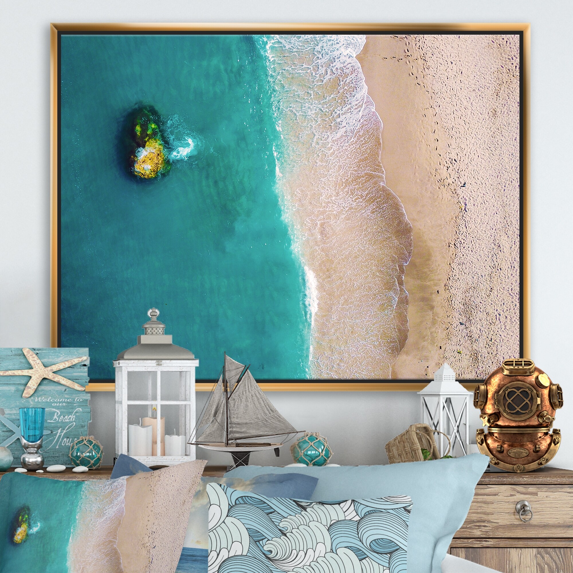 Designart "Beach Rocks And Shore Aerial View VI" Nautical & Coastal Framed Canvas Wall Decor