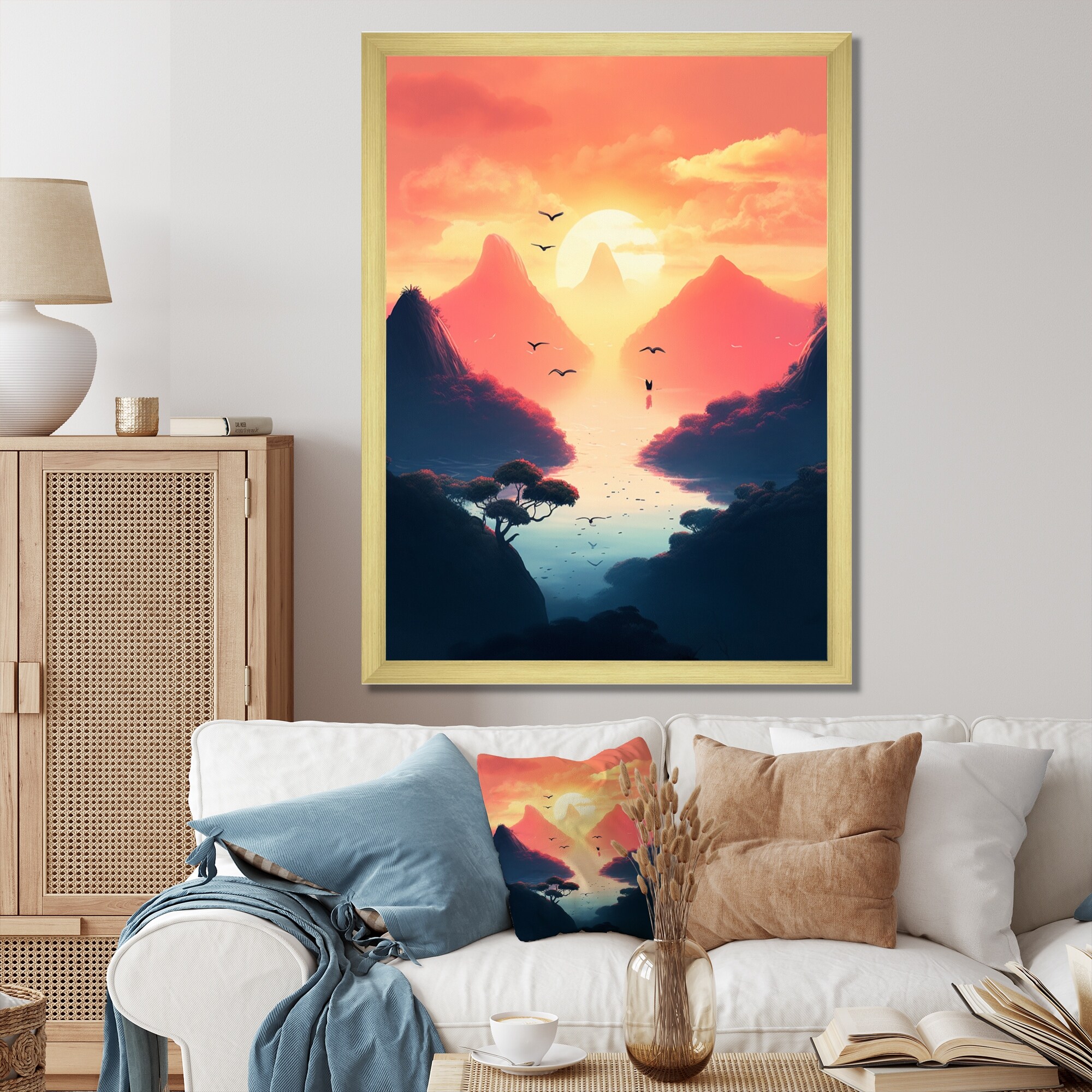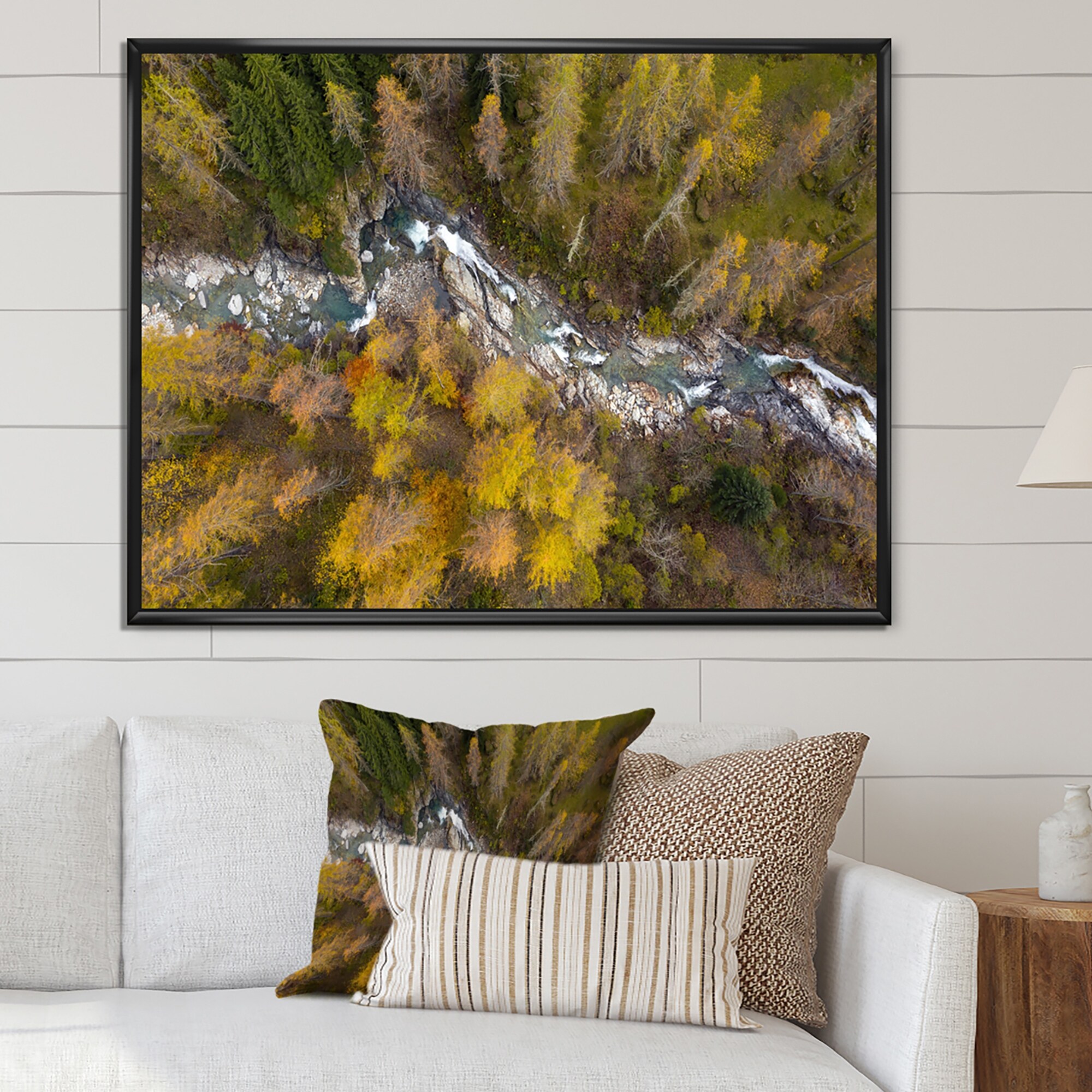 Designart "Aerial View Mountains River Autumn" Traditional Framed Canvas Art Print