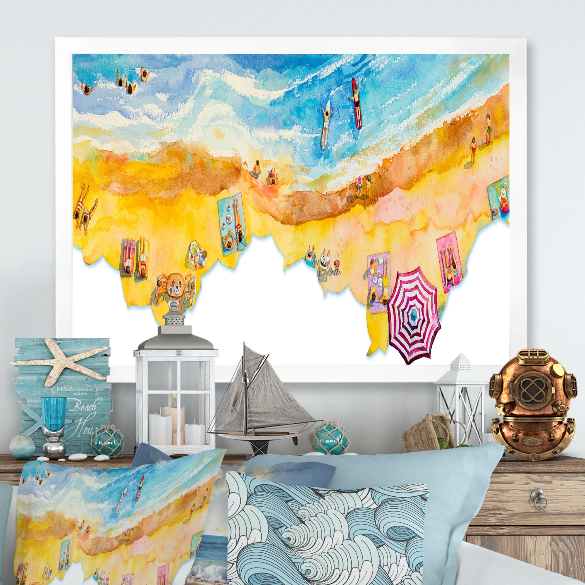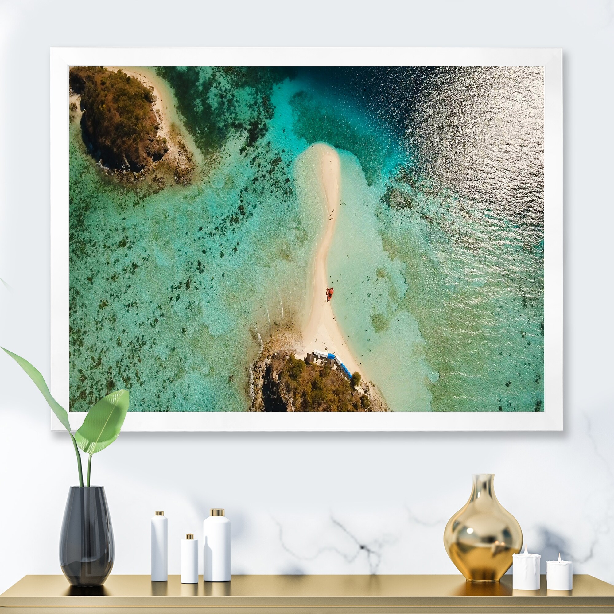 Designart "Aerial View of Tropical Beach III" Nautical & Coastal Framed Art Print