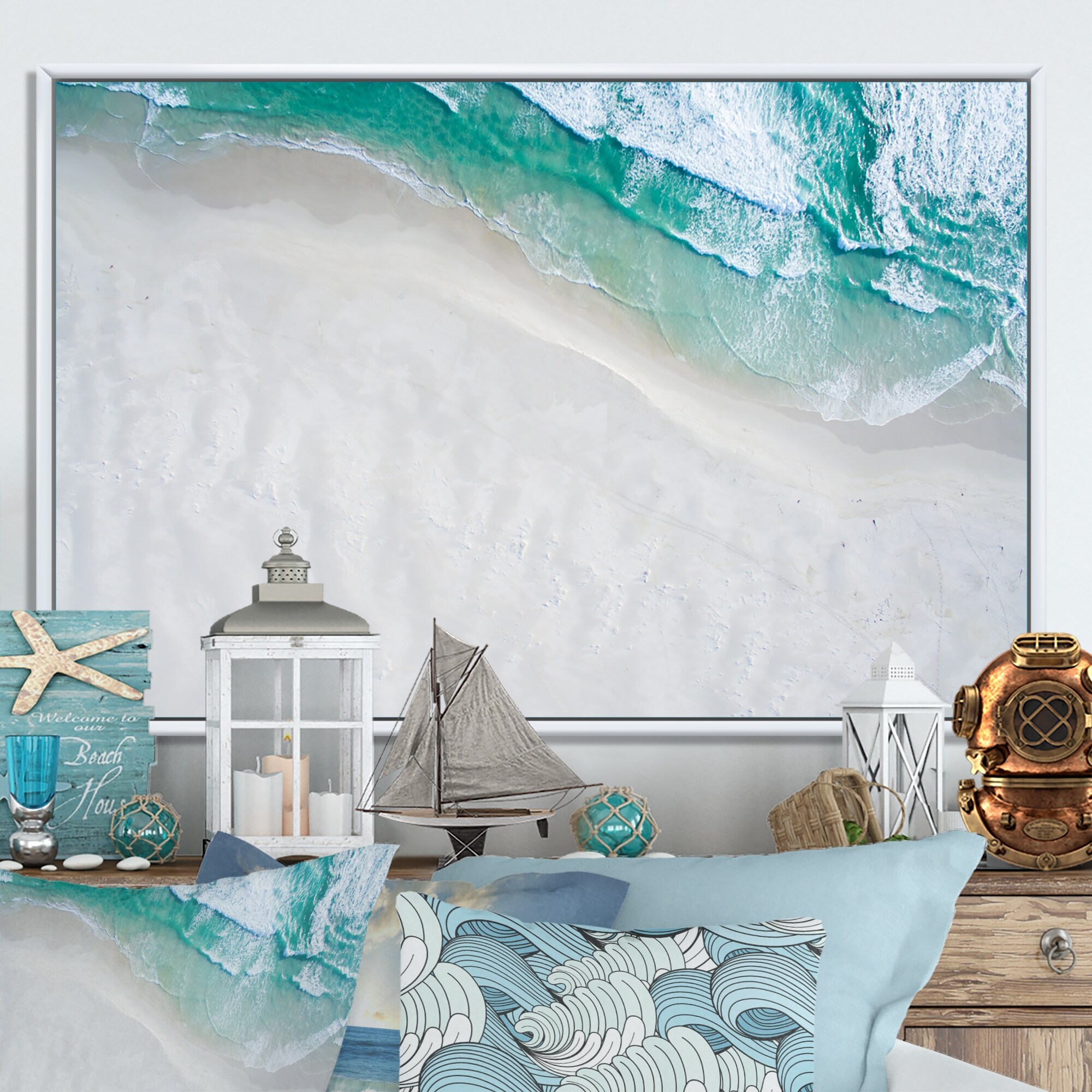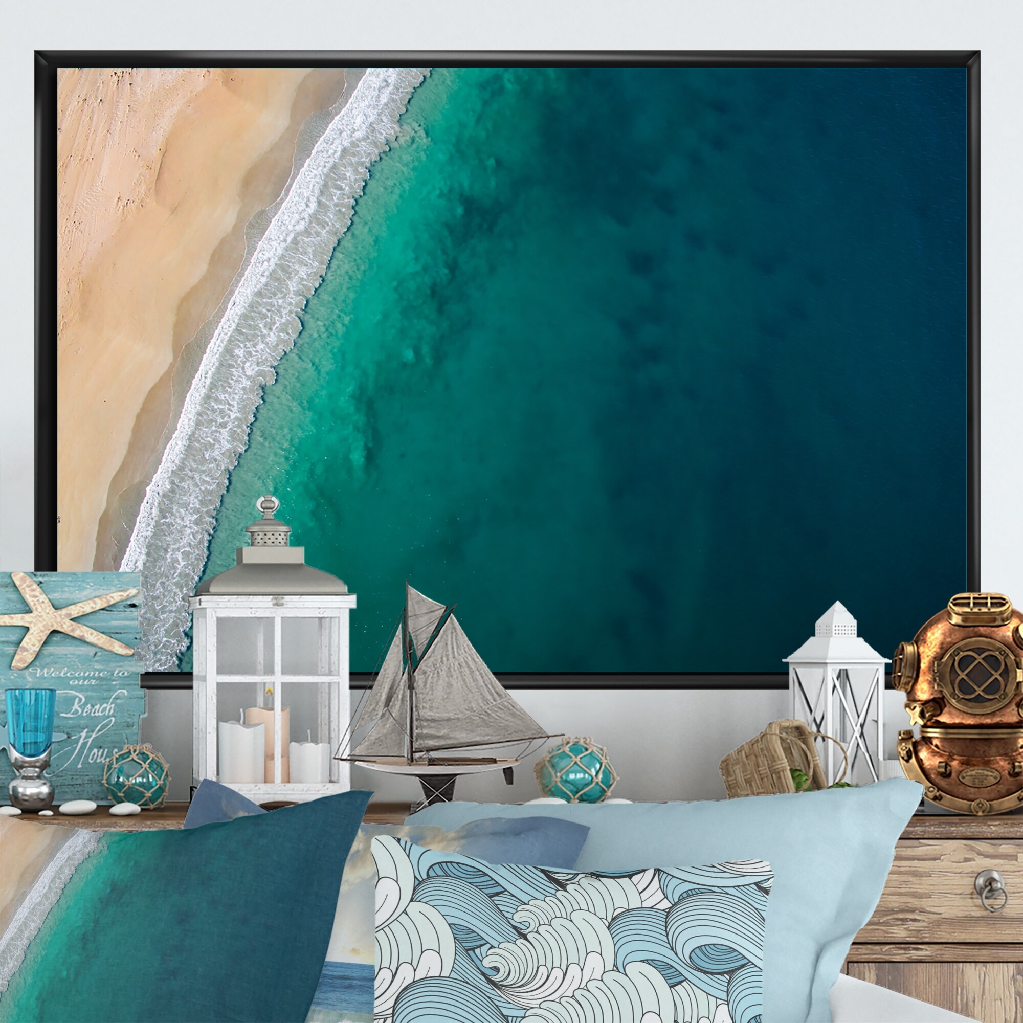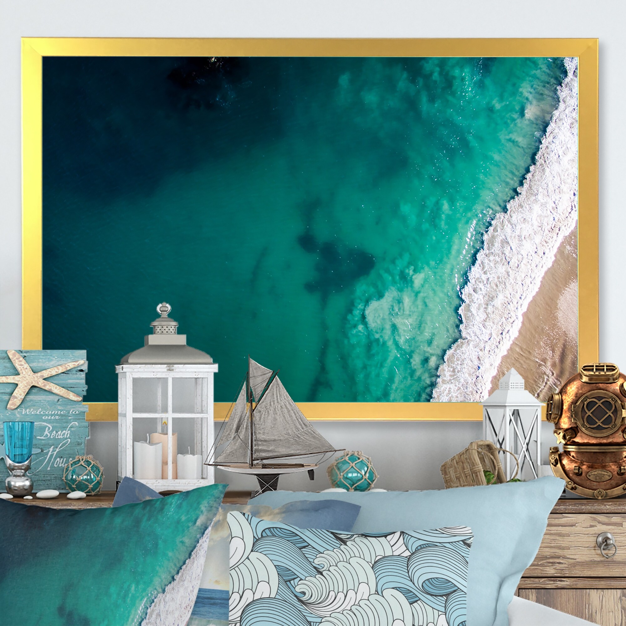 Designart "Aerial View Turquoise Water on Beahc" Nautical & Coastal Framed Art Print