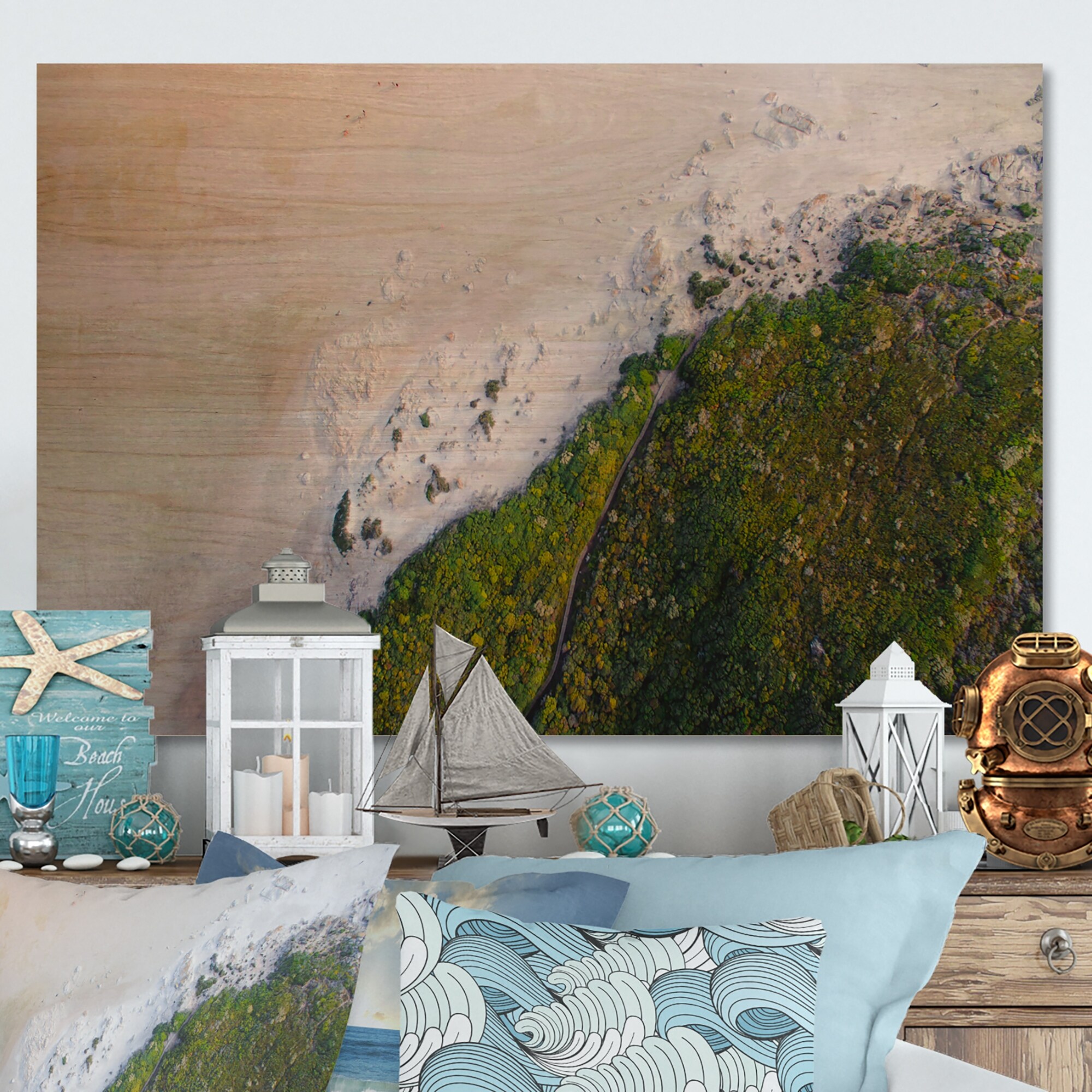 Designart 'Aerial View Dramatic Beach' Nautical & Coastal Wood Wall Art - Natural Pine Wood