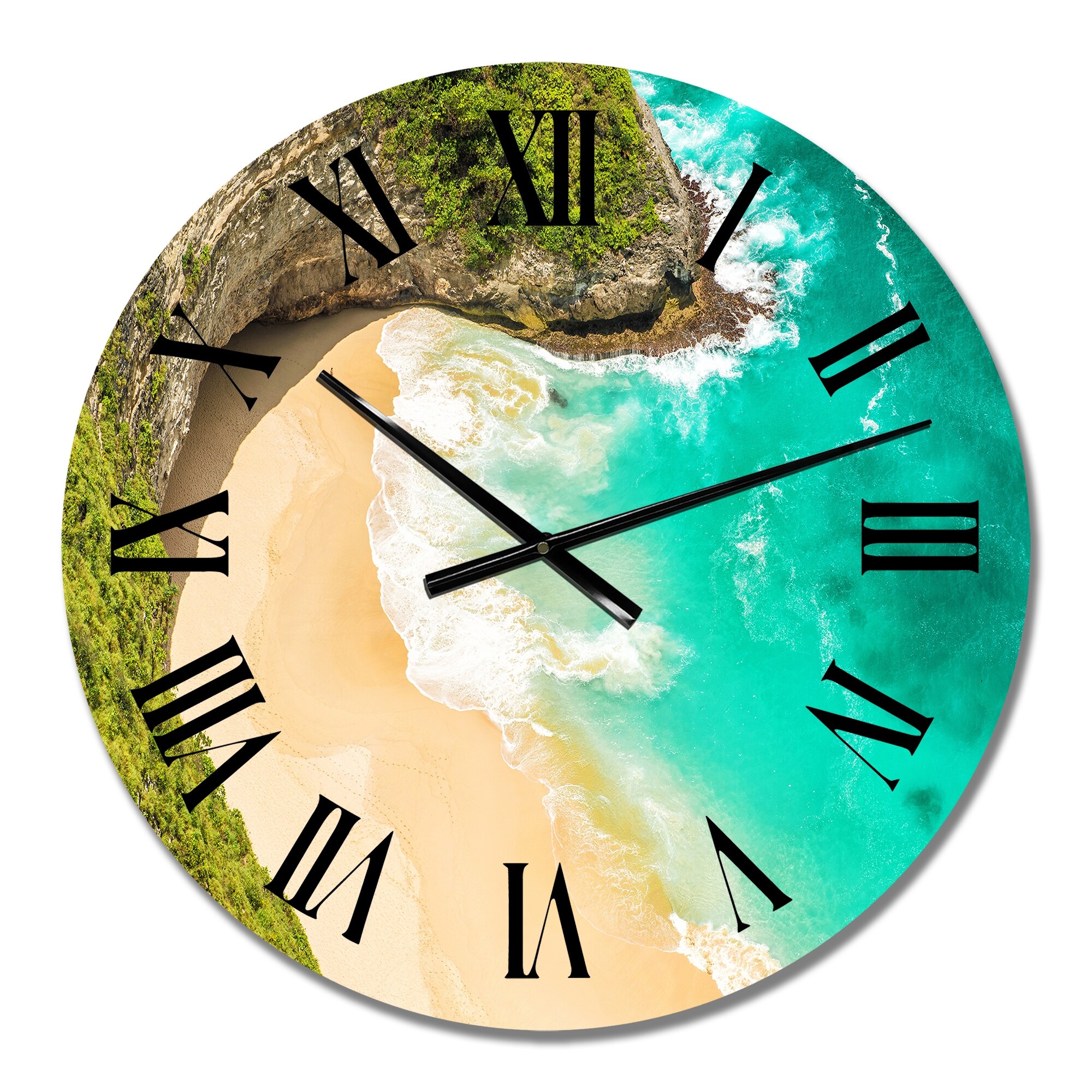 Designart 'Turquoise Tropical Beach Aerial View III' Nautical & Coastal wall clock