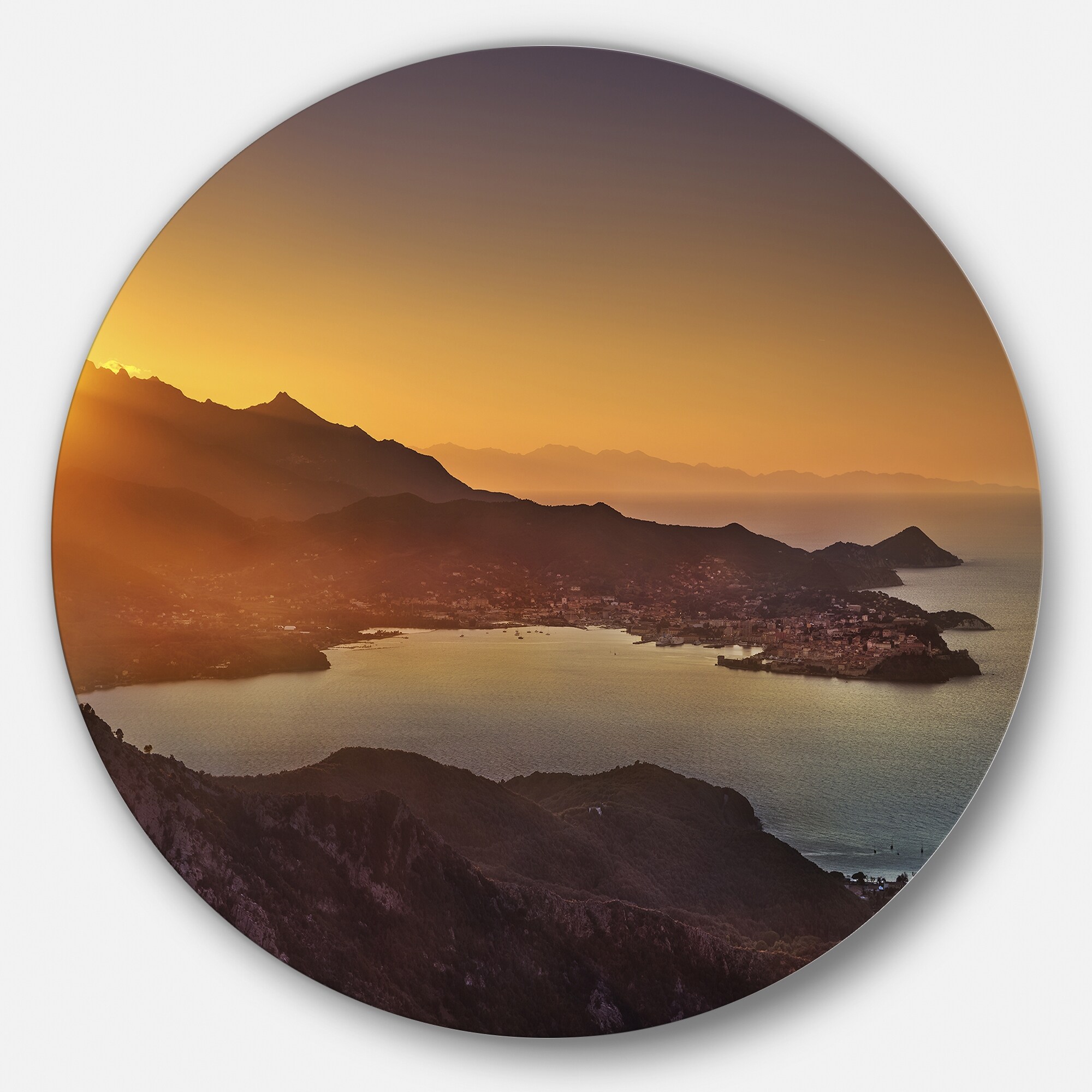 Designart 'Portoferraio Bay Beach Aerial View' Seashore Round Wall Art