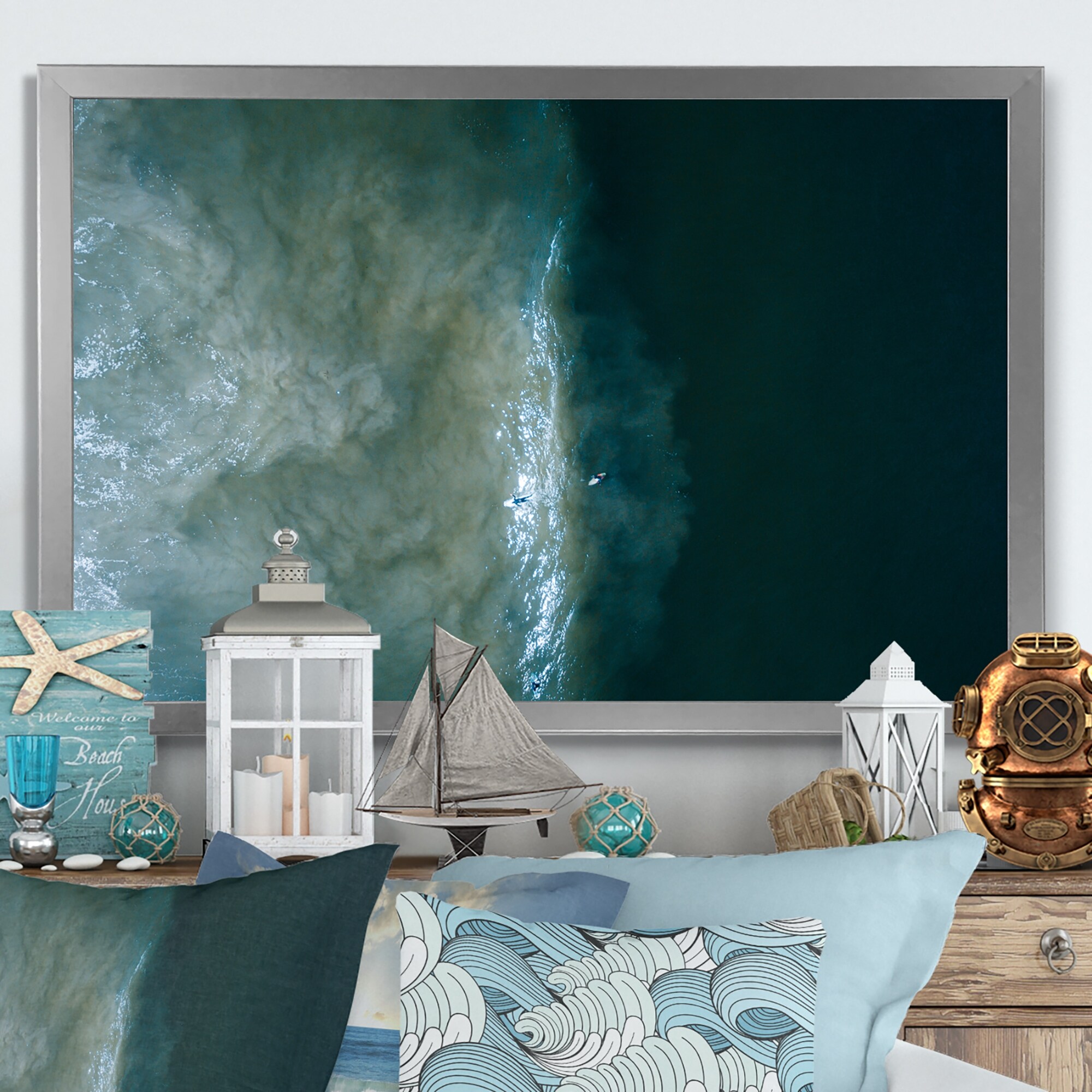 Designart "Ocean Beach Aerial View VII" Nautical & Coastal Framed Wall Art