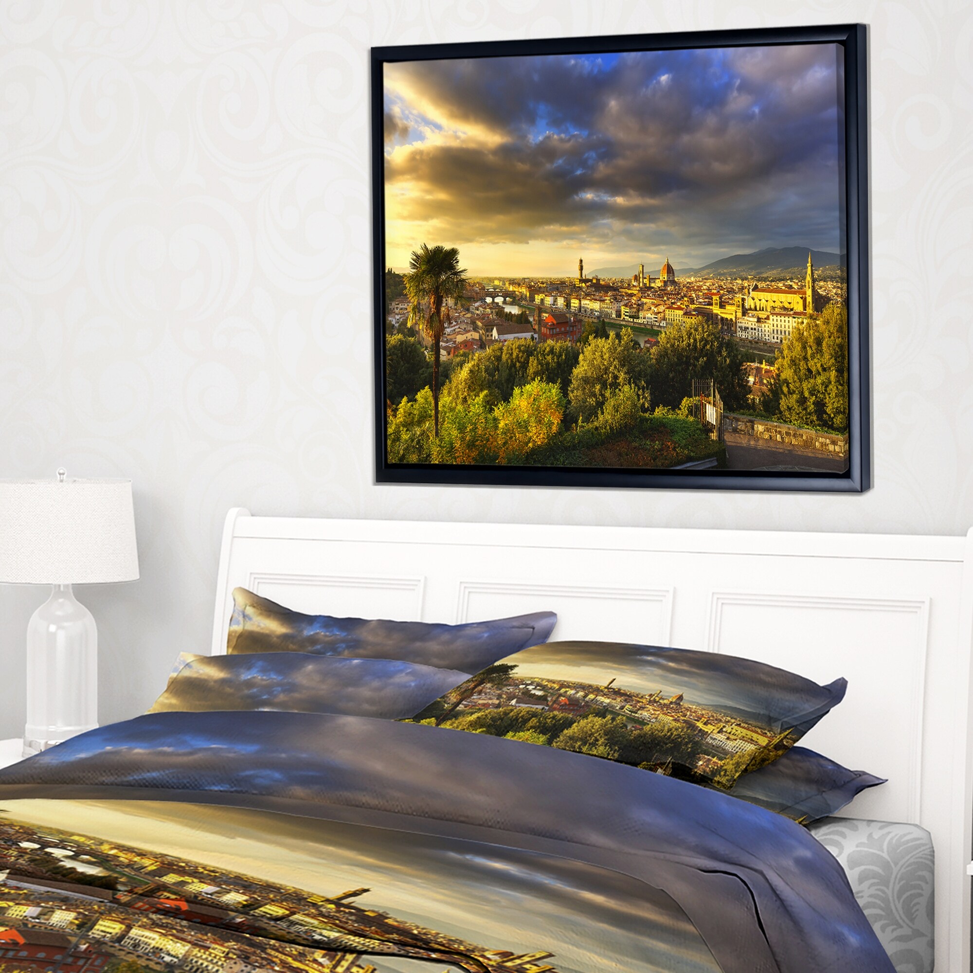 Designart "Florence Sunset Aerial View" Landscape Framed Canvas Art Print
