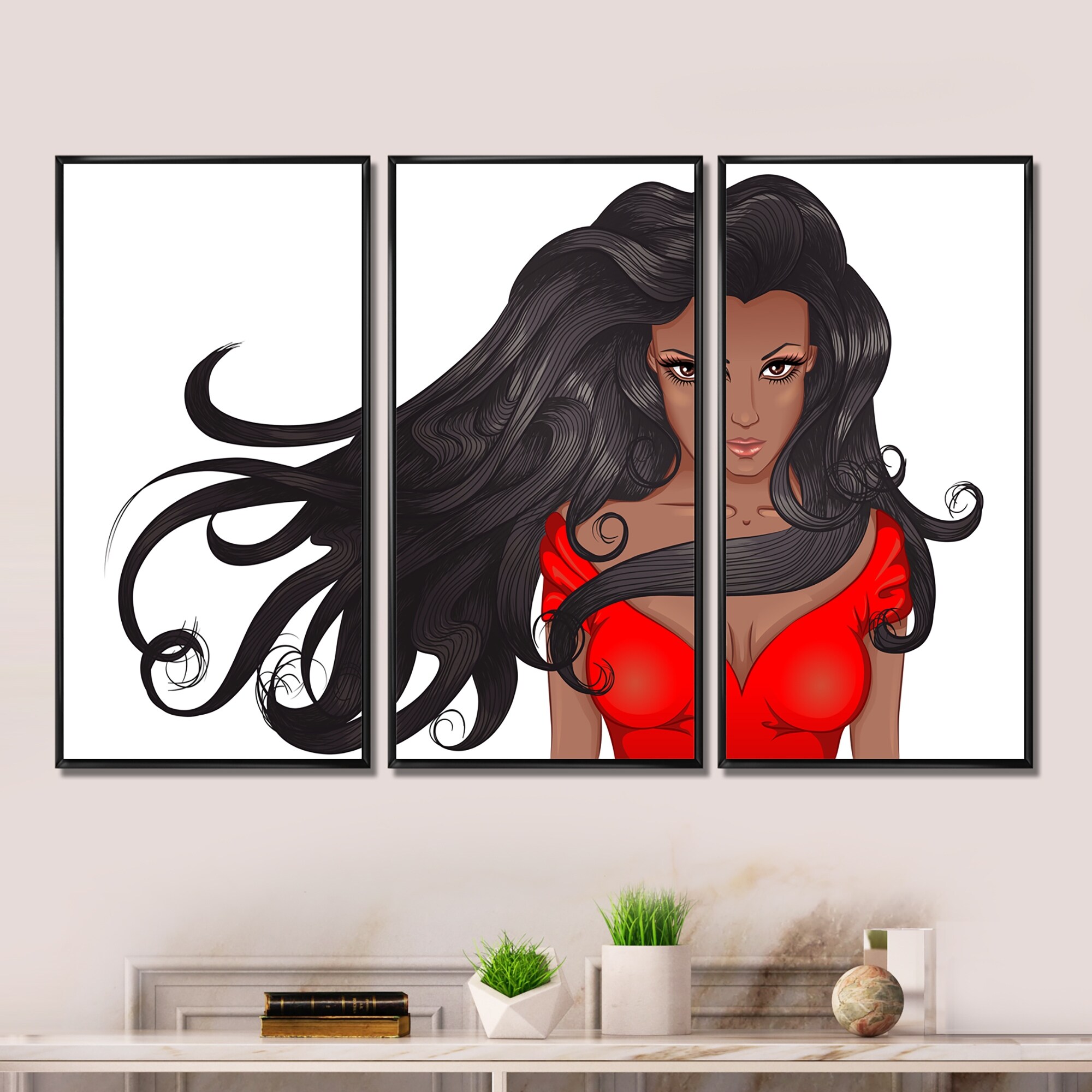 Designart "Portrait of African American Woman VI" Modern Framed Wall Art Set of 3 - 4 Colors of Frames