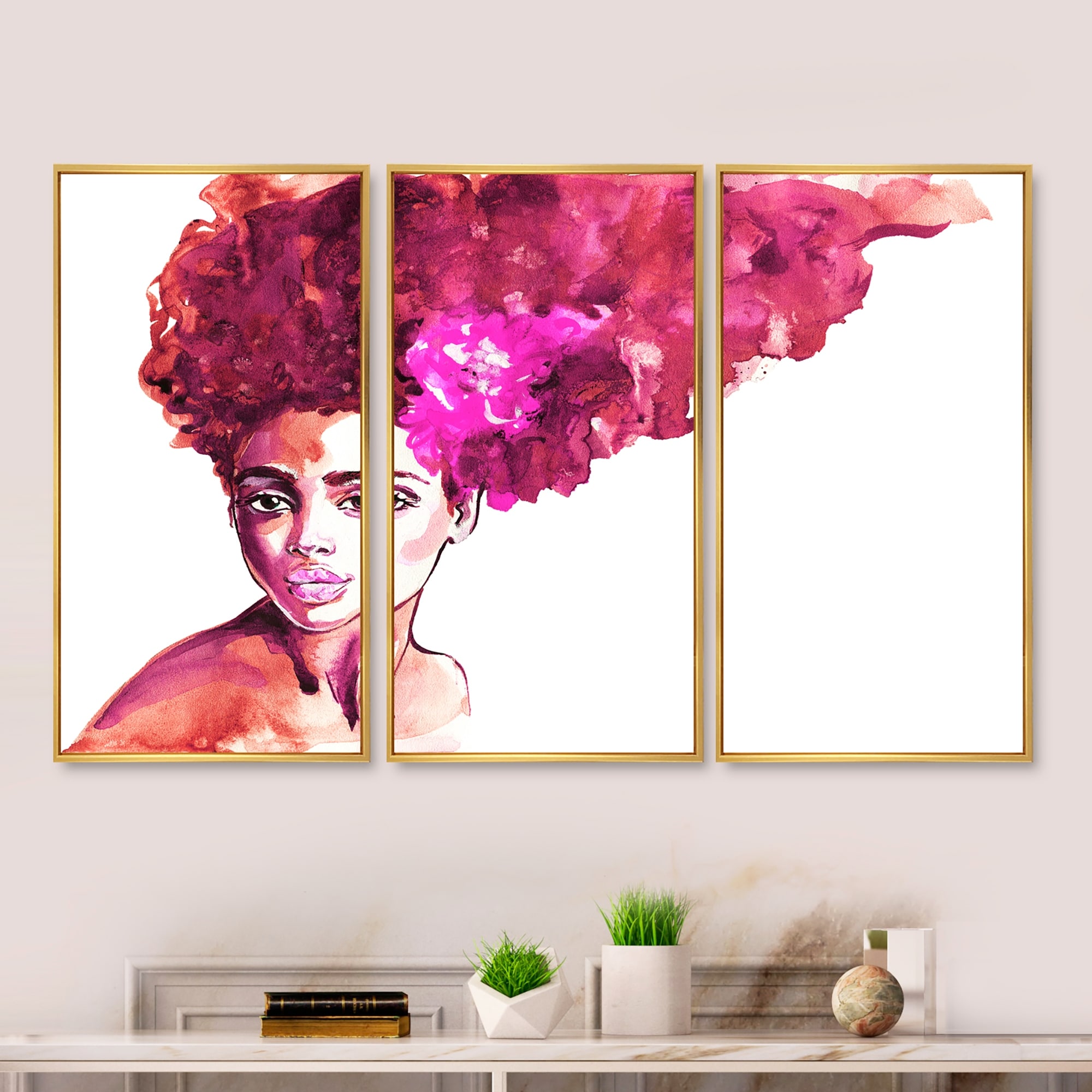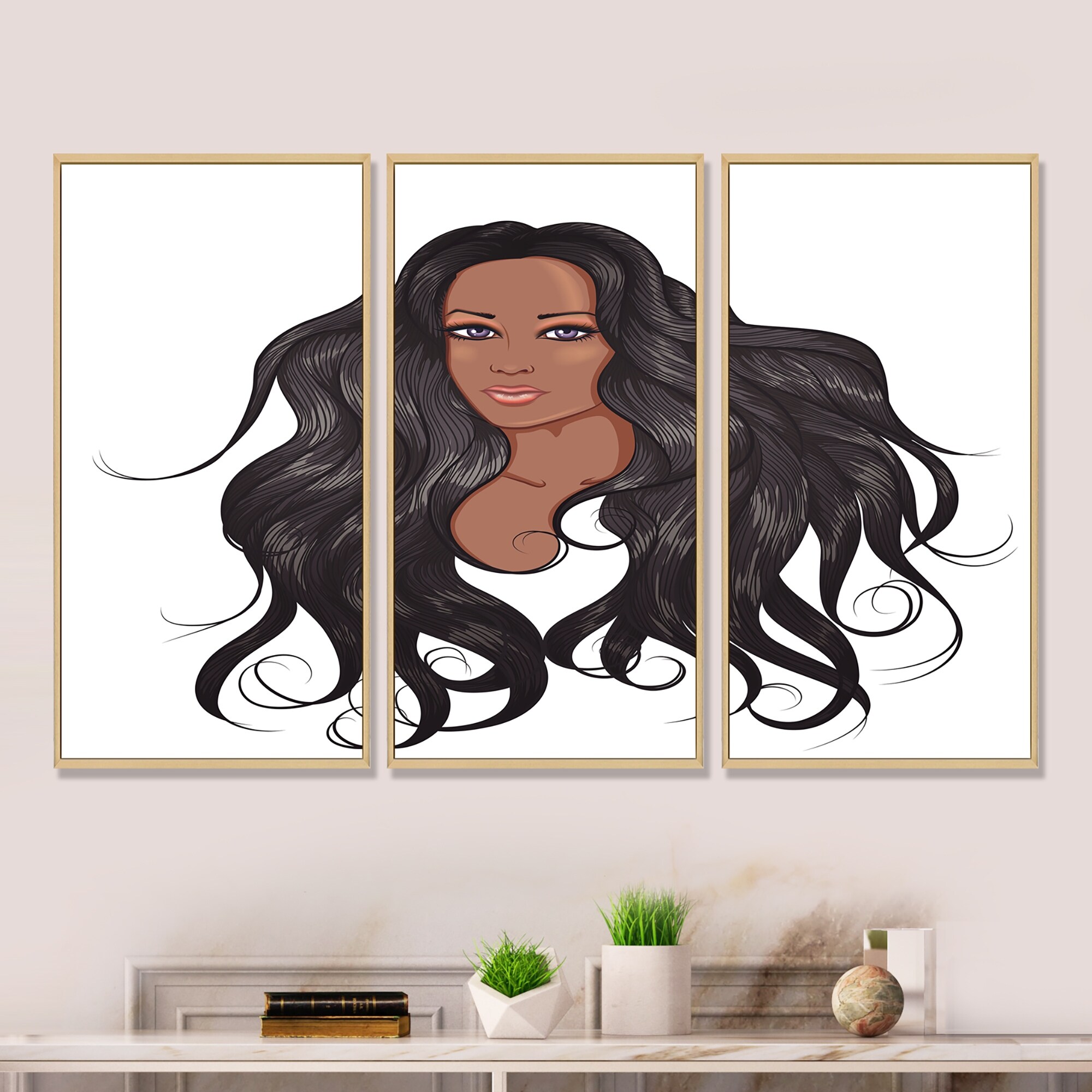 Designart "Portrait of African American Woman XIII" Modern Framed Canvas Wall Art Print Set of 3 - 4 Colors of Frames