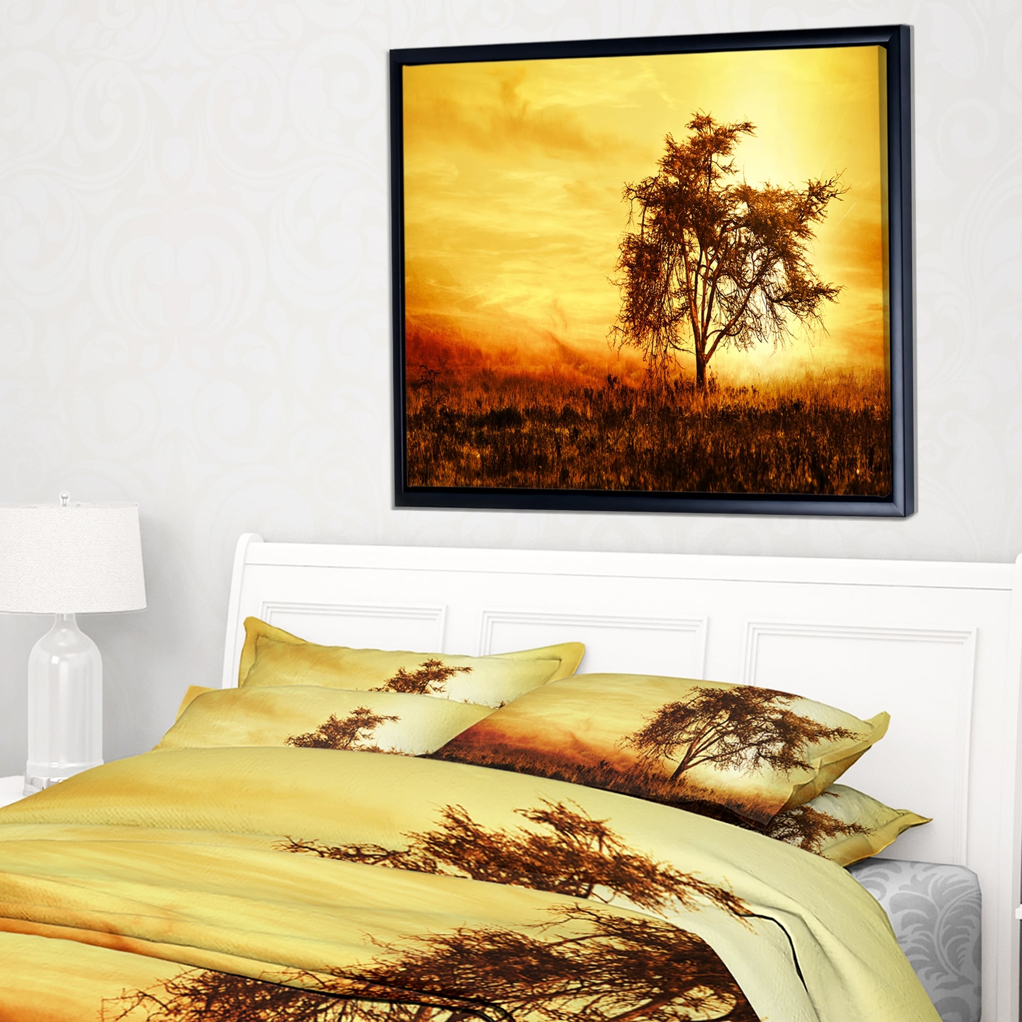 Designart "African Tree Silhouette" Landscape Photo Framed Canvas Art Print