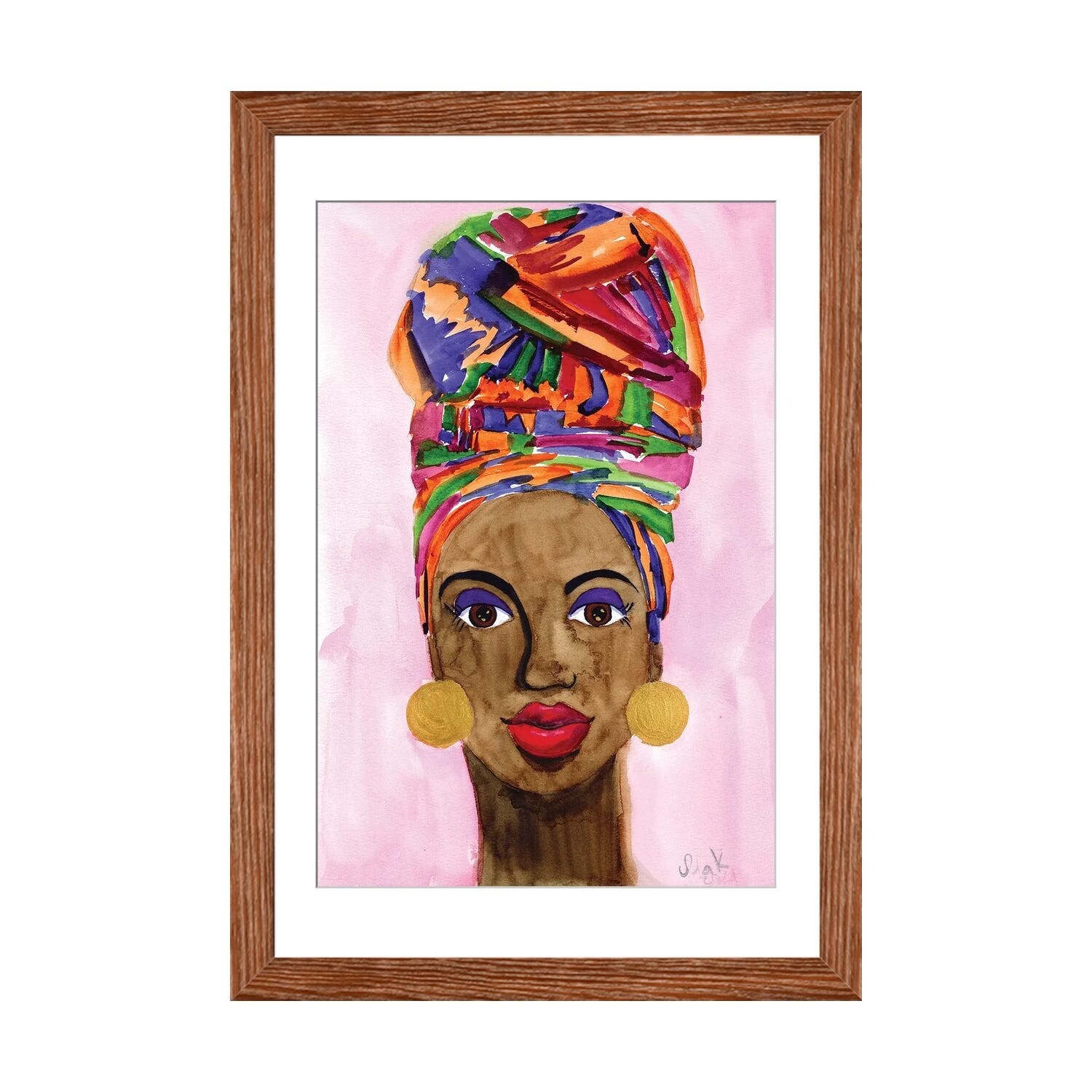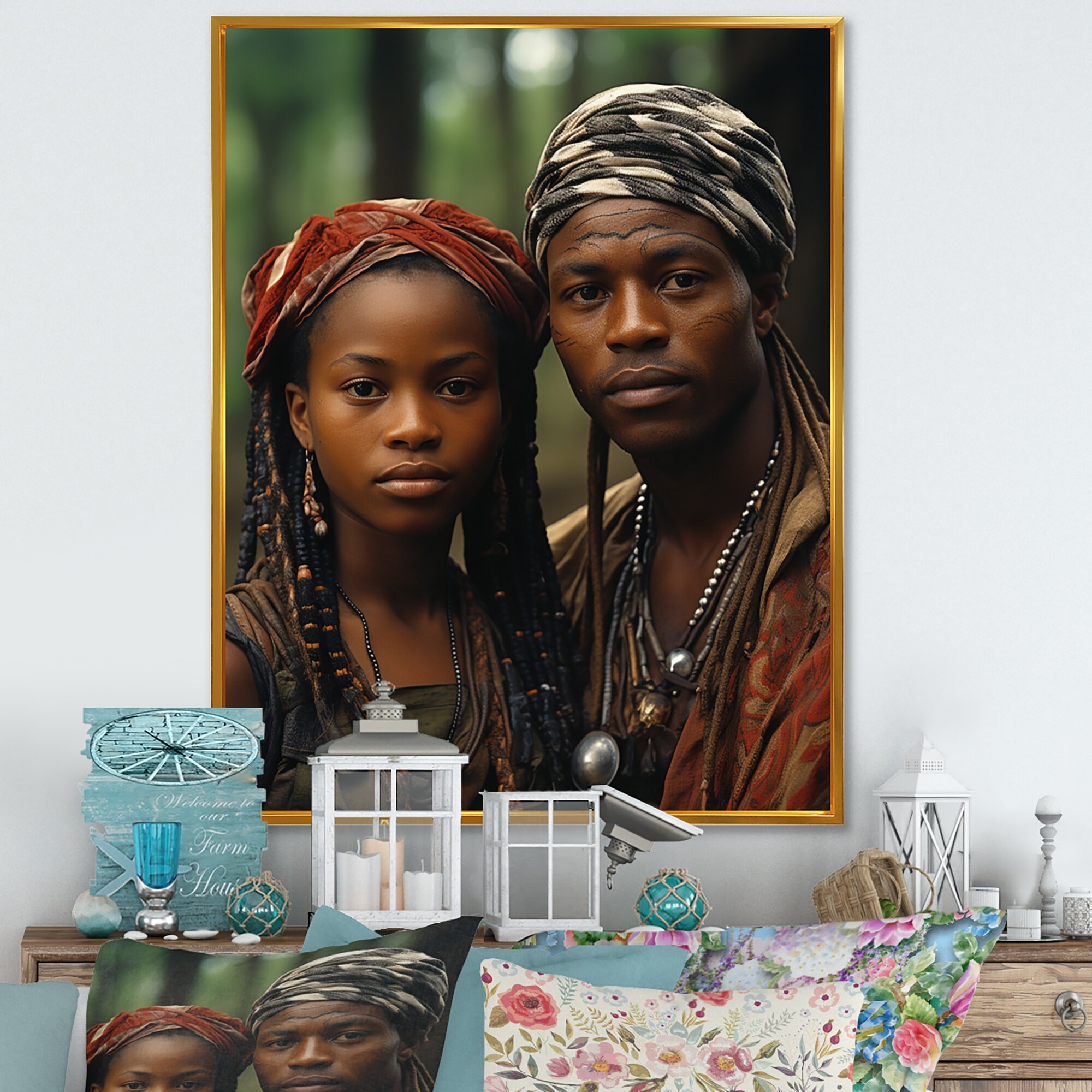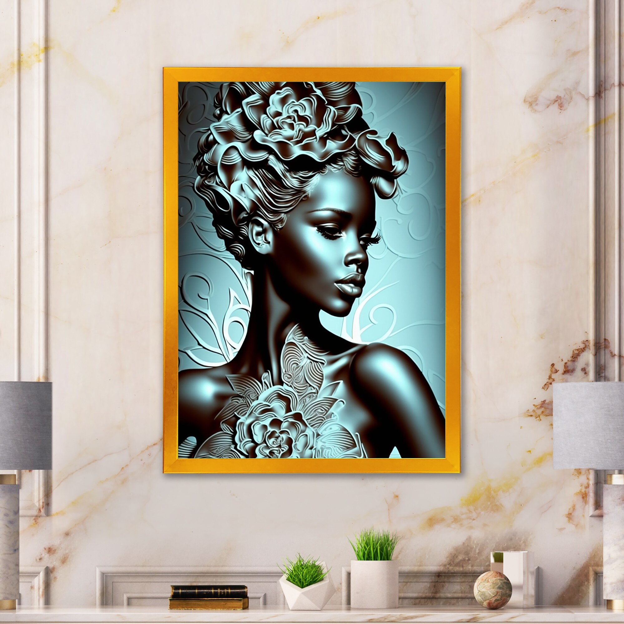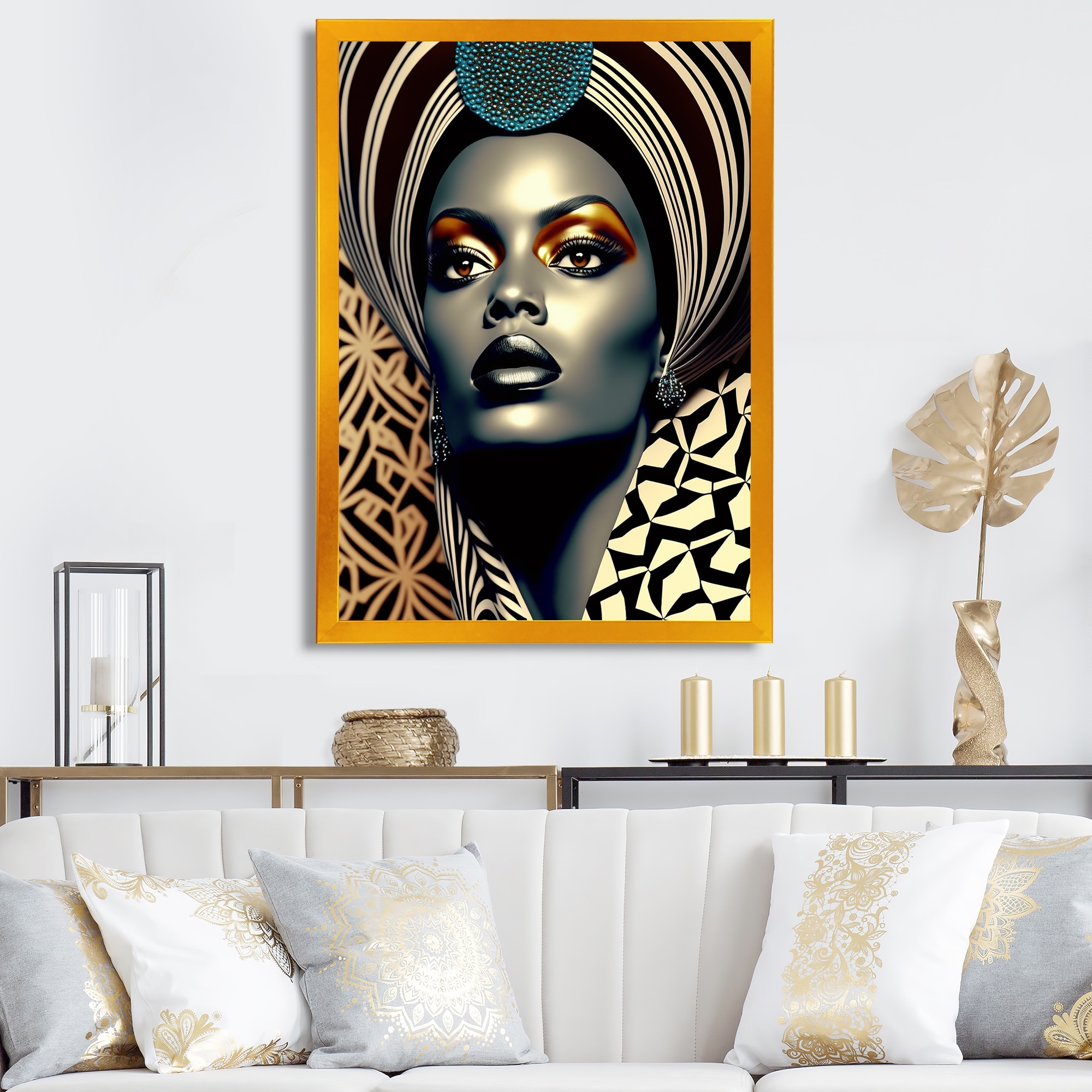 Designart "African American Woman in Turban" Glam Framed Canvas Wall Art Print