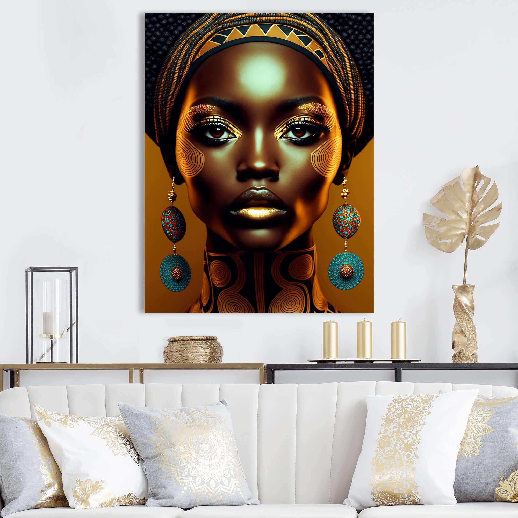 Designart "Portrait Of Glamorous African Lady VIII" African American Woman Canvas Wall Art