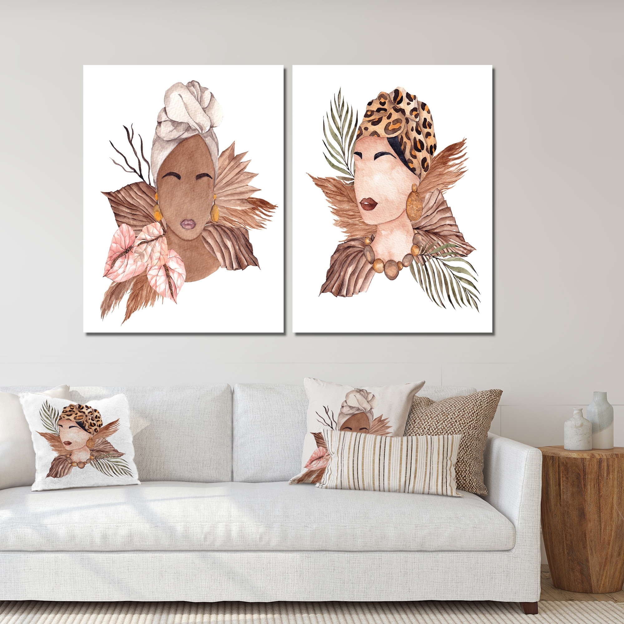 Designart 'African American Woman, Dried Flowers, Leaves I' Glam Art Set of 2 Pieces