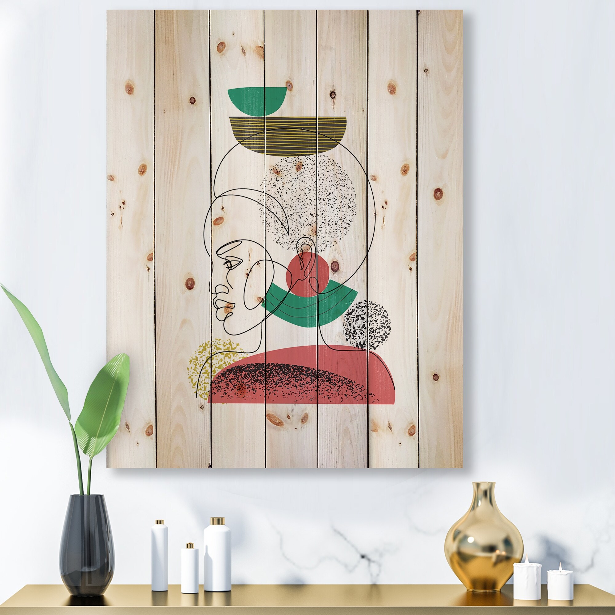 Designart 'One Line Portrait of African American Women II' Modern Print on Natural Pine Wood