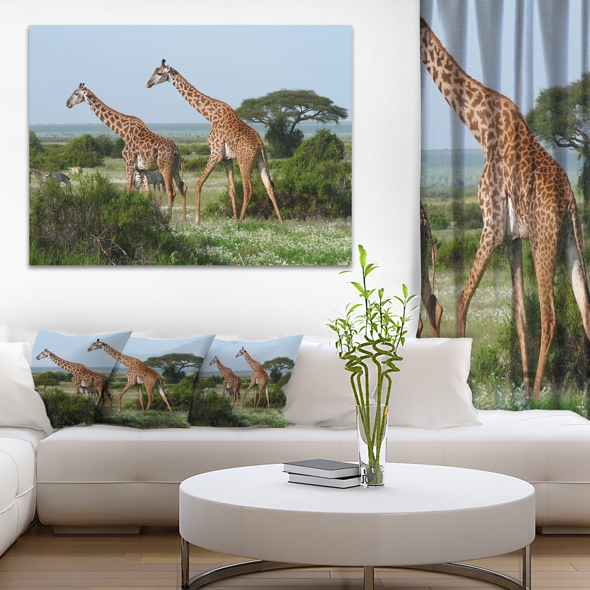 Designart "Two Giraffes in African Savannah" African Canvas Artwork Print